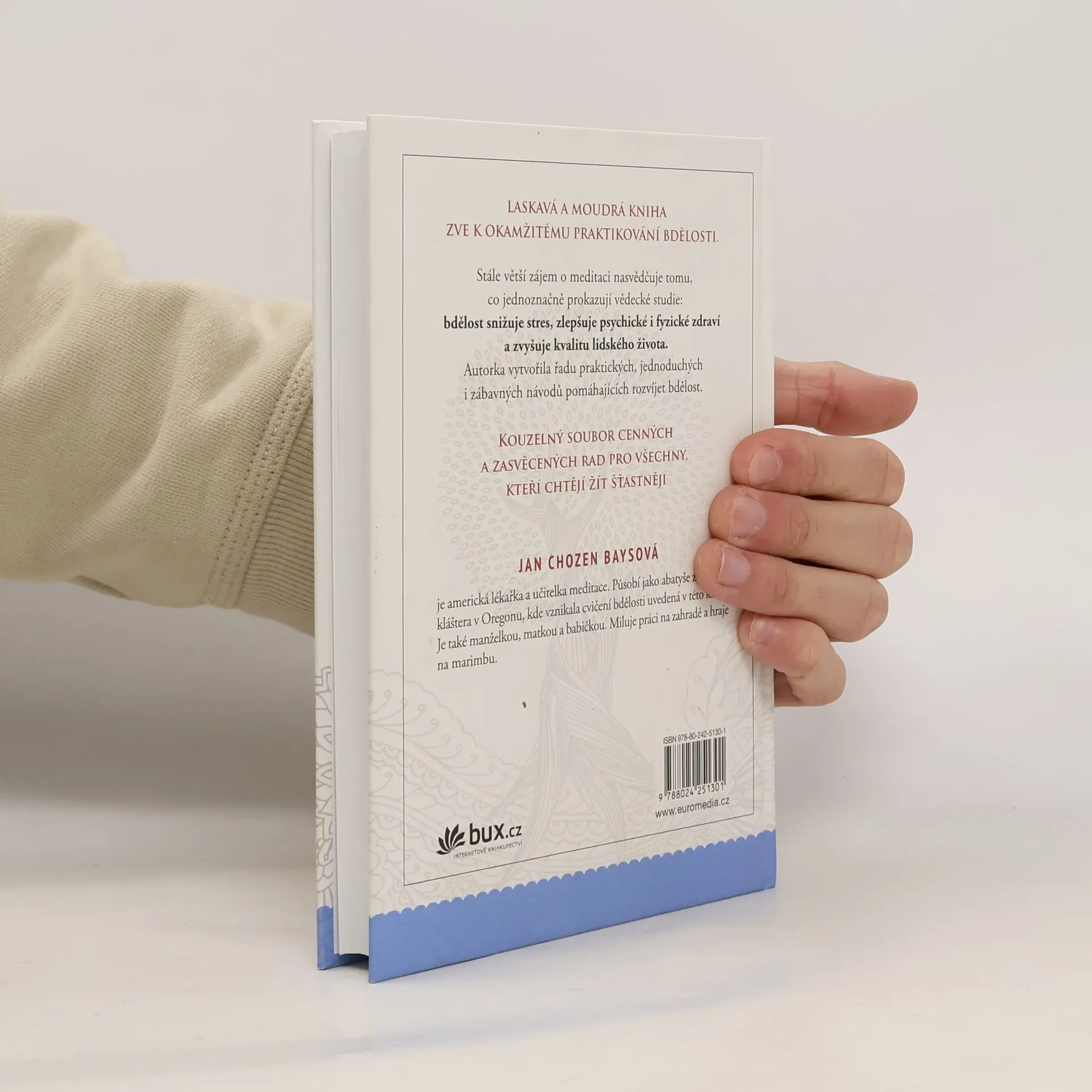 Srdečná a moudrá kniha americké lékařky, která je zenovou mistryní, zve k okamžitému praktikování bdělosti přímo uprostřed každodenního shonu. Uvádí cenné praktické rady, často je úsměvná a vždy míří k jádru věci. Usebranost je ohromně prospěšná – přináší nejen větší klid a snížení stresu, ale celkově zlepšení zdraví a kvality života