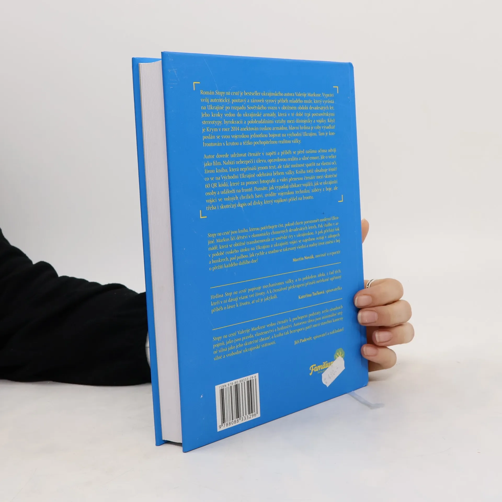 Román Stopy na cestě je bestseller ukrajinského autora Valerije Markuse. Vypráví svůj autentický, poutavý a zároveň syrový příběh mladého muže, který vyrůstá na Ukrajině po rozpadu Sovětského svazu v obtížném období devadesátých let. Jeho kroky vedou do ukrajinské armády, která v té době trpí postsovětskými stereotypy, byrokracií a polofeudálními vztahy mezi důstojníky a vojáky. Když je Krym v roce 2014 anektován ruskou armádou, hlavní hrdina je coby výsadkář poslán se svou vojenskou jednotkou bojovat na východní Ukrajinu. Tam je konfrontován s krutou a těžko pochopitelnou realitou války. Autor dovede udržovat čtenáře v napětí a příběh se před našima očima odvíjí jako film. Nabízí nebezpečí i úlevu, opravdovou realitu a silné emoce. Jde o velice živou knihu, která nepřináší jenom text, ale také možnost spatřit na vlastní oči, co se na východní Ukrajině odehrává během války. Kniha totiž obsahuje téměř 60 QR kódů, které za pomoci fotografií a videí přenesou čtenáře mezi skutečné osoby a události na frontě. Poznáte, jak vypadají ubikace vojáků, jak se ukrajinští vojáci ve volných chvílích baví, uvidíte vojenskou techniku, záběry z boje, ale třeba i skutečný dopis od dívky, který vojákovi přišel na frontu.