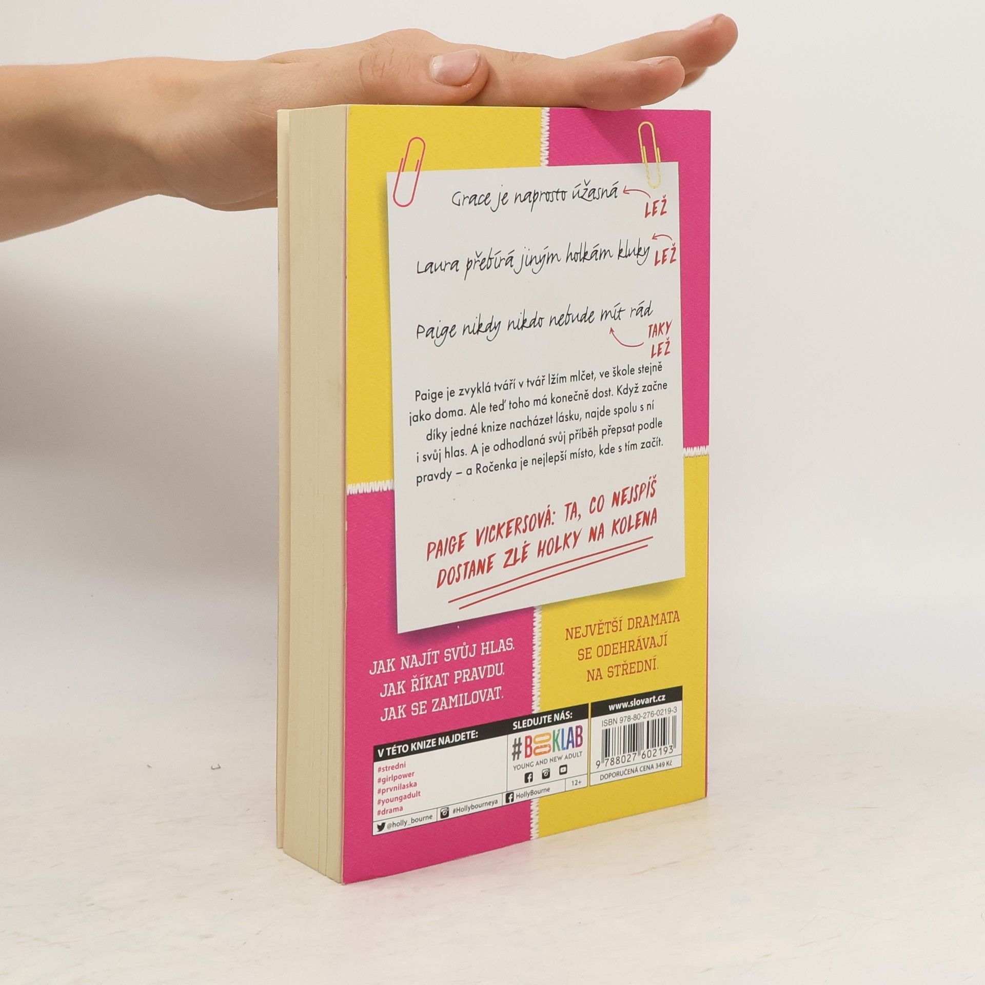 Jak najít svůj hlas? Jak se zamilovat? Jak říkat pravdu? Středoškolačka Paige Vickersová, která pracuje pro školní noviny, je na vylhané příběhy zvyklá. Patří mezi ně třeba řeči o tom, jak je nejpopulárnější spolužačka Grace úžasná. Jenže to je lež. Jak Laura přebírá kluky jiným holkám. To je taky lež. A jak je její vlastní rodina dokonalá. I to je ale… lež. Teď populární Grace a její kamarádky vybírají do chystané ročenky ty „nejlepší středoškolské příběhy“. Jenže tyhle příběhy nejsou jen vylhané, jsou toxické! Page už má lží plné zuby. S pomocí Elijaha, jediného kluka, který ji kdy chápal, je odhodlaná povědět všem pravdu. A asi tím dostane pár lidí na kolena.