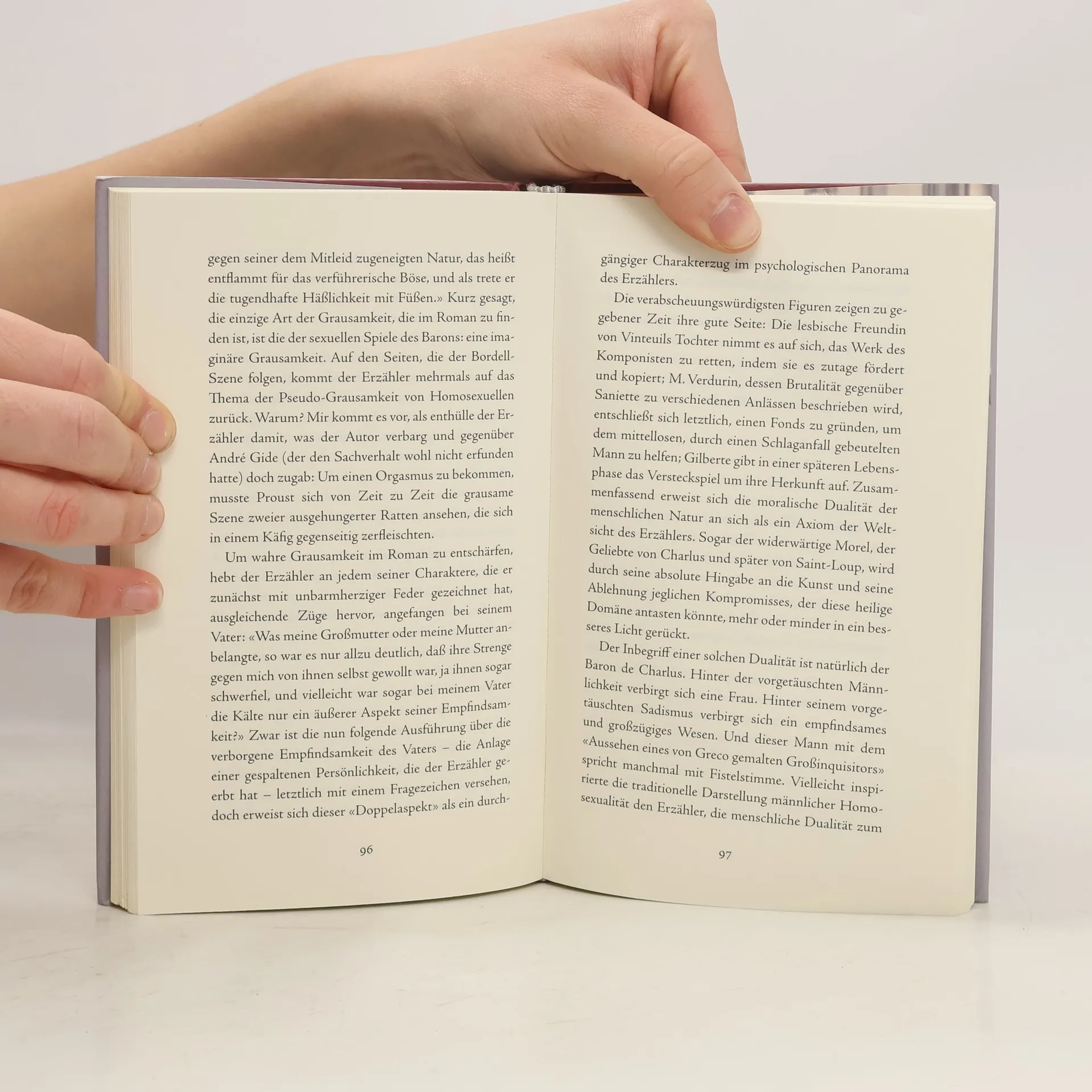 Saul Friedländer analysiert in seinem Essay das Lesen von Marcel Prousts "Auf der Suche nach der verlorenen Zeit". Er beleuchtet Themen wie die Rolle der Juden, Homosexualität und die Beziehung zwischen Erzähl-Ich und Autor. Friedländer vermittelt die Freude an Prousts Sprache und regt dazu an, das Werk selbst zu entdecken.