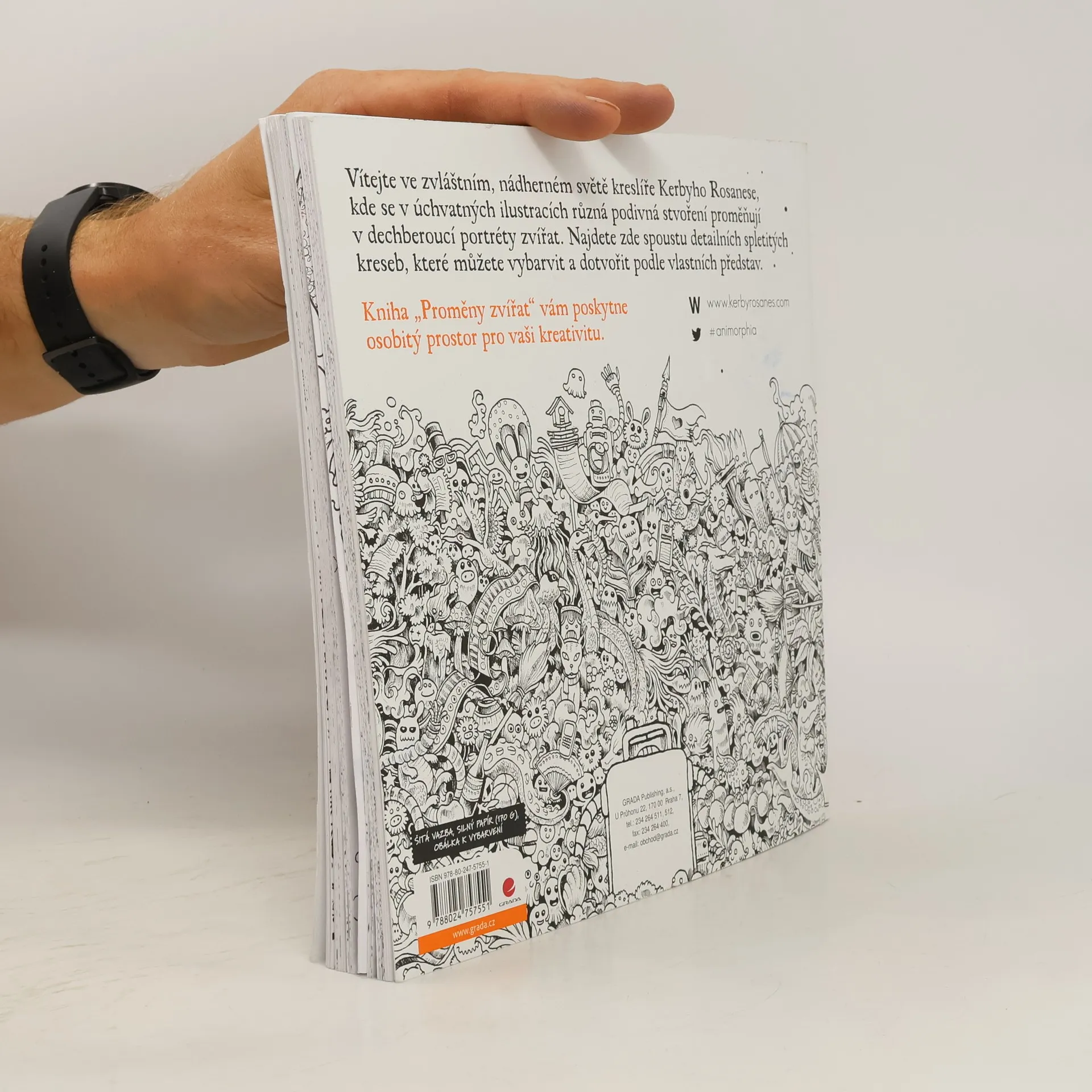 Vítejte ve zvláštním, nádherném světě kreslíře Kerbyho Rosanese, kde se v úchvatných ilustracích různá podivná stvoření proměňují v dechberoucí portréty zvířat. Najdete zde spoustu detailních spletitých kreseb, které můžete vybarvit a dotvořit podle vlastních představ. Kniha „Proměny zvířat“ vám poskytne osobitý prostor pro vaši kreativitu.