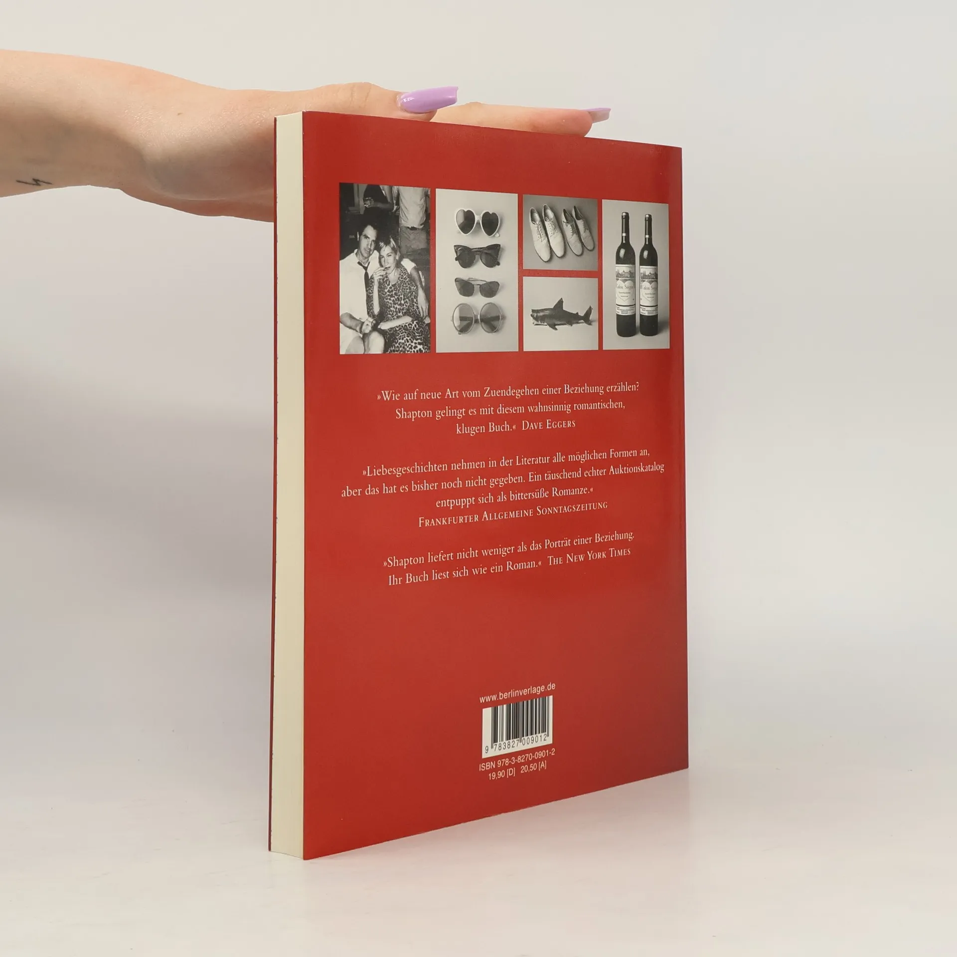 Die Autorin Leanne Shapton inspiriert sich beim Besuch einer Versteigerung von Truman Capotes Nachlass zu einem Buch über eine Beziehung. Sie schafft einen fiktiven Auktionskatalog, der über 300 Fotos und Beschreibungen von Gegenständen eines New Yorker Paares enthält und die Chronik ihrer herzzerreißenden Liebe erzählt.