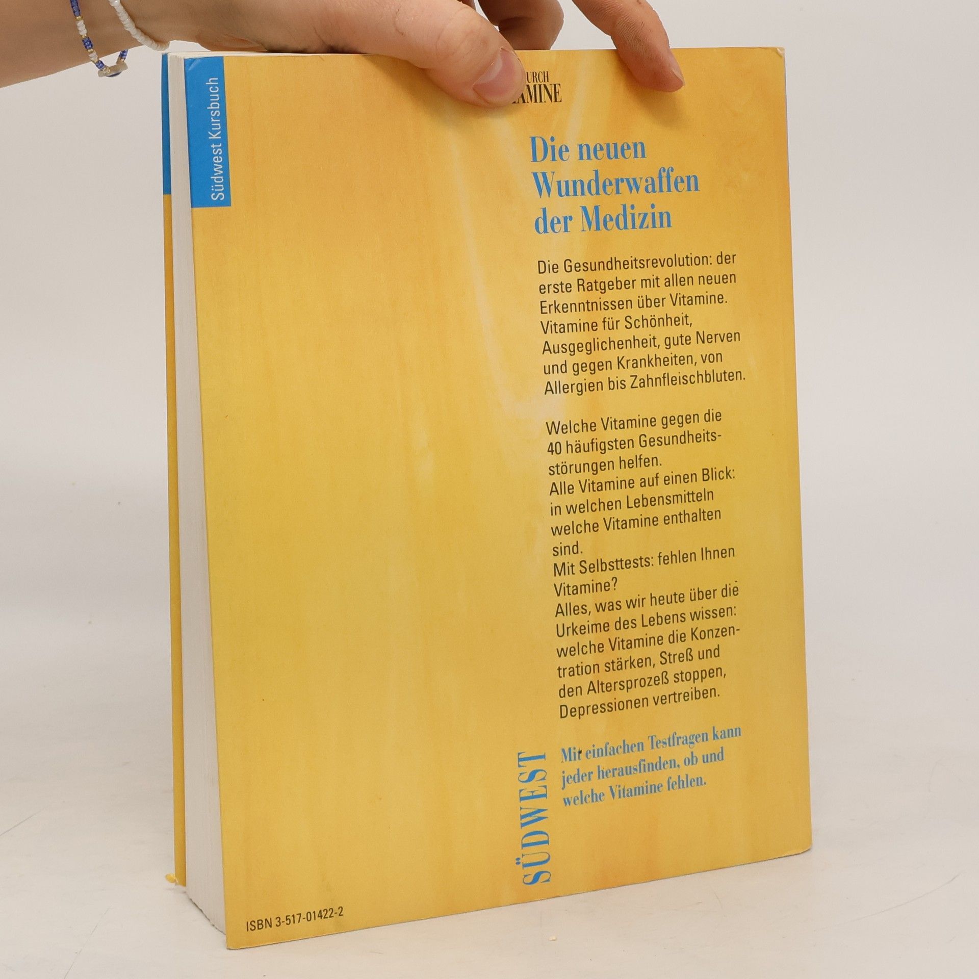 Vitamine sind eine der erstaunlichsten Erfindungen der Natur. Der menschliche Organismus benötigt diese Biostoffe zwar nur in sehr geringen Mengen, aber ohne sie kann er nicht arbeiten. Wenn jemand ständig müde, krank oder depressiv ist, liegt häufig ein Vitaminmangel vor - eine Tatsache, die leider oft auch von Ärzten übersehen wird. Dieses Kursbuch präsentiert den aktuellen Forschungsstand zu Vitaminen und ihren Wirkungen und zeigt auf, wie man sie gezielt für Vitalität, Schönheit und zur Krankheitsbehandlung von Allergien bis Zahnfleischbluten einsetzen kann.