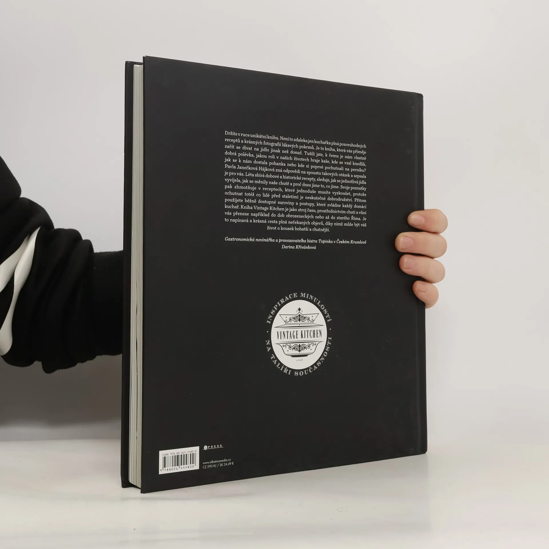 Inspirace minulostí na talíři současnosti Držíte v ruce unikátní knihu. Není to zdaleka jen kuchařka plná pozoruhodných receptů a krásných fotografií lákavých pokrmů. Je to kniha, která vás přiměje začít se dívat na jídlo jinak než dosud. Tušili jste, k čemu je nám vlastně dobrá polévka, jakou roli v našich životech hraje kaše, kde se vzal knedlík, jak se k nám dostala pohanka nebo kde si poprvé pochutnali na perníku? Pavla Janečková Hájková zná odpovědi na spoustu takových otázek a sepsala je pro vás. Léta sbírá dobové a historické recepty, sleduje, jak se jednotlivá jídla vyvíjela, jak se měnily naše chutě, a proč dnes jíme to, co jíme. Svoje poznatky pak zhmotňuje v receptech, které jednoduše musíte vyzkoušet, protože ochutnat totéž co lidé před staletími je neskutečné dobrodružství. Přitom použijete běžně dostupné suroviny a postupy, které zvládne každý domácí kuchař. Kniha Vintage Kitchen je jako stroj času, prostřednictvím chutí a vůní vás přenese například do dob obrozeneckých nebo až do starého Říma. Je to napínavá a krásná cesta plná nečekaných objevů, díky nimž může být váš život o kousek bohatší a chutnější. Gastronomická novinářka a provozovatelka bistra Topinka Darina Křivánková.