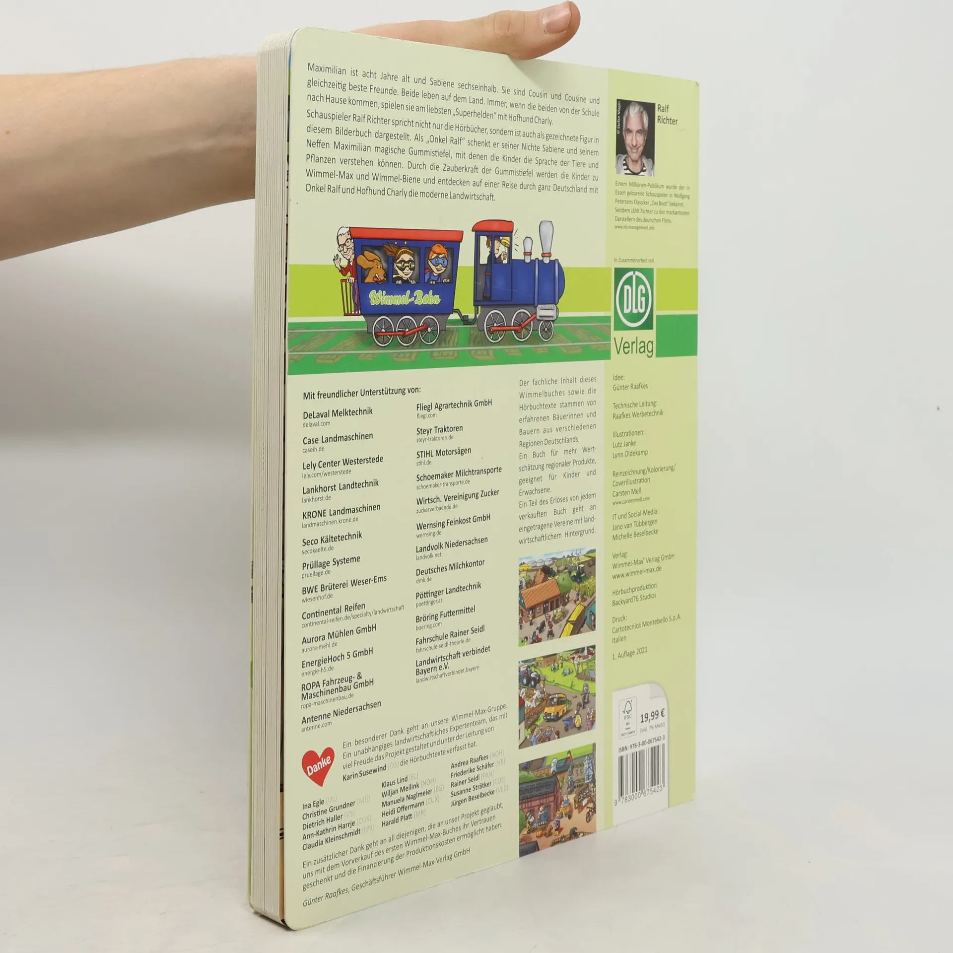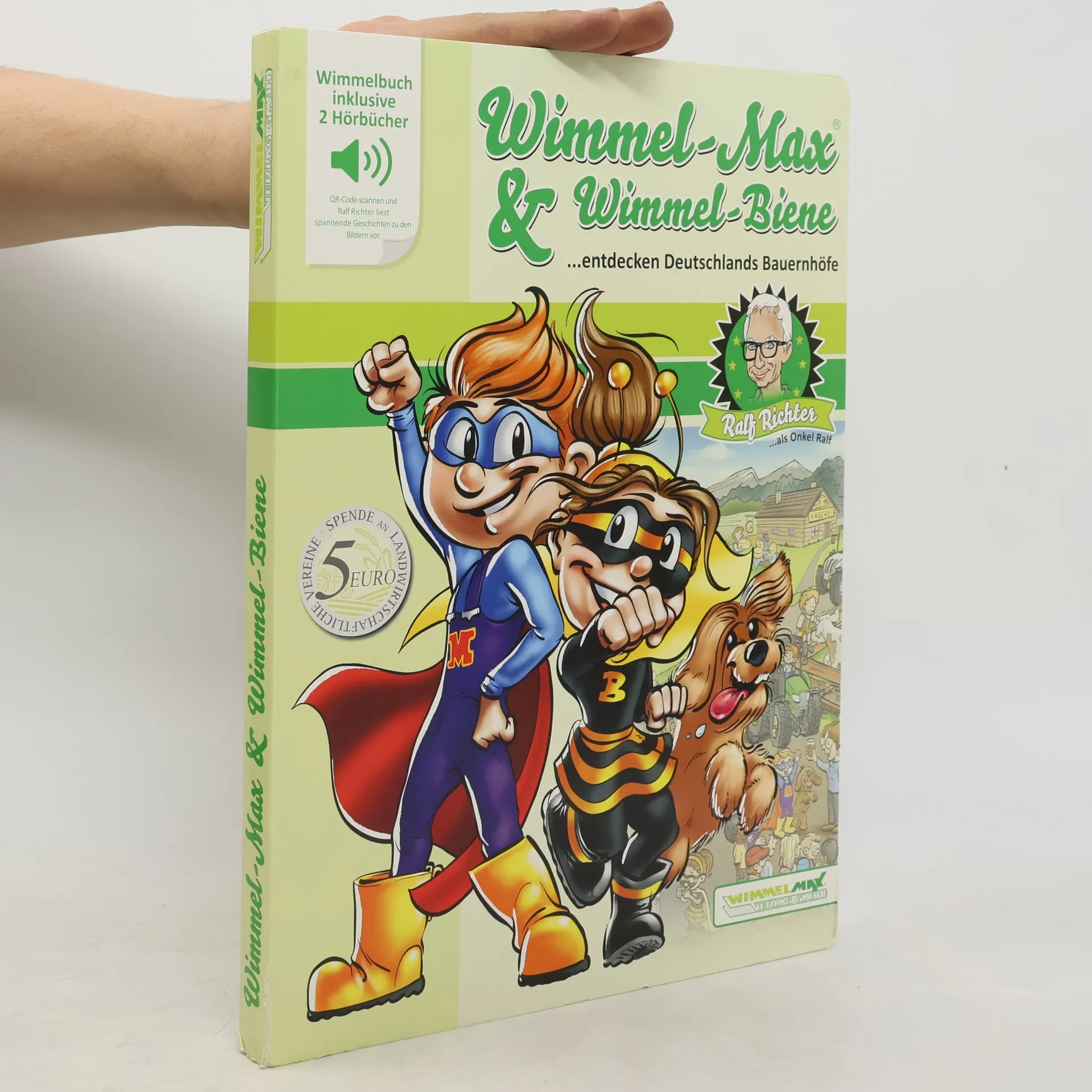 Das erste „Wimmel-Max“-Bilderbuch kombiniert kunstvolle Illustrationen mit einem integrierten Smartphone-Hörbuch, um über moderne Landwirtschaft aufzuklären. Die Cousins Maximilian und Sabiene, unterstützt von Onkel Ralf und Hofhund Charly, entdecken die Bedeutung regionaler Produkte und Umweltbewusstsein. Ein unterhaltsames Familienbuch.