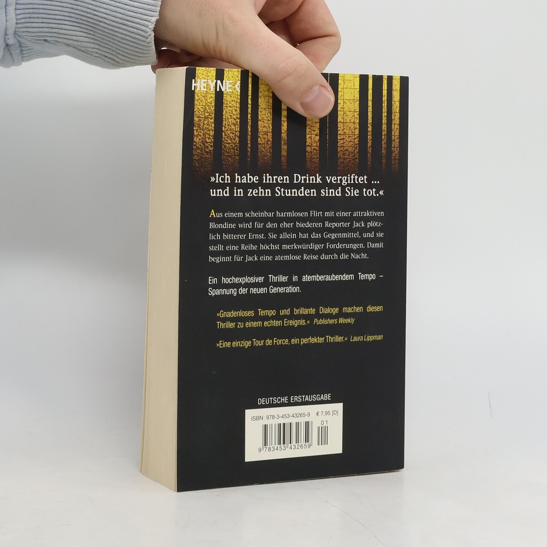 Ein hochexplosiver Thriller in atemberaubendem Tempo – Spannung der neuen Generation „Ich habe Ihren Drink vergiftet … und in zehn Stunden sind Sie tot.“ Aus einem scheinbar harmlosen Flirt mit einer attraktiven Blondine wird für den eher biederen Reporter Jack plötzlich bitterer Ernst. Es beginnt eine atemlose Reise durch die Nacht.
