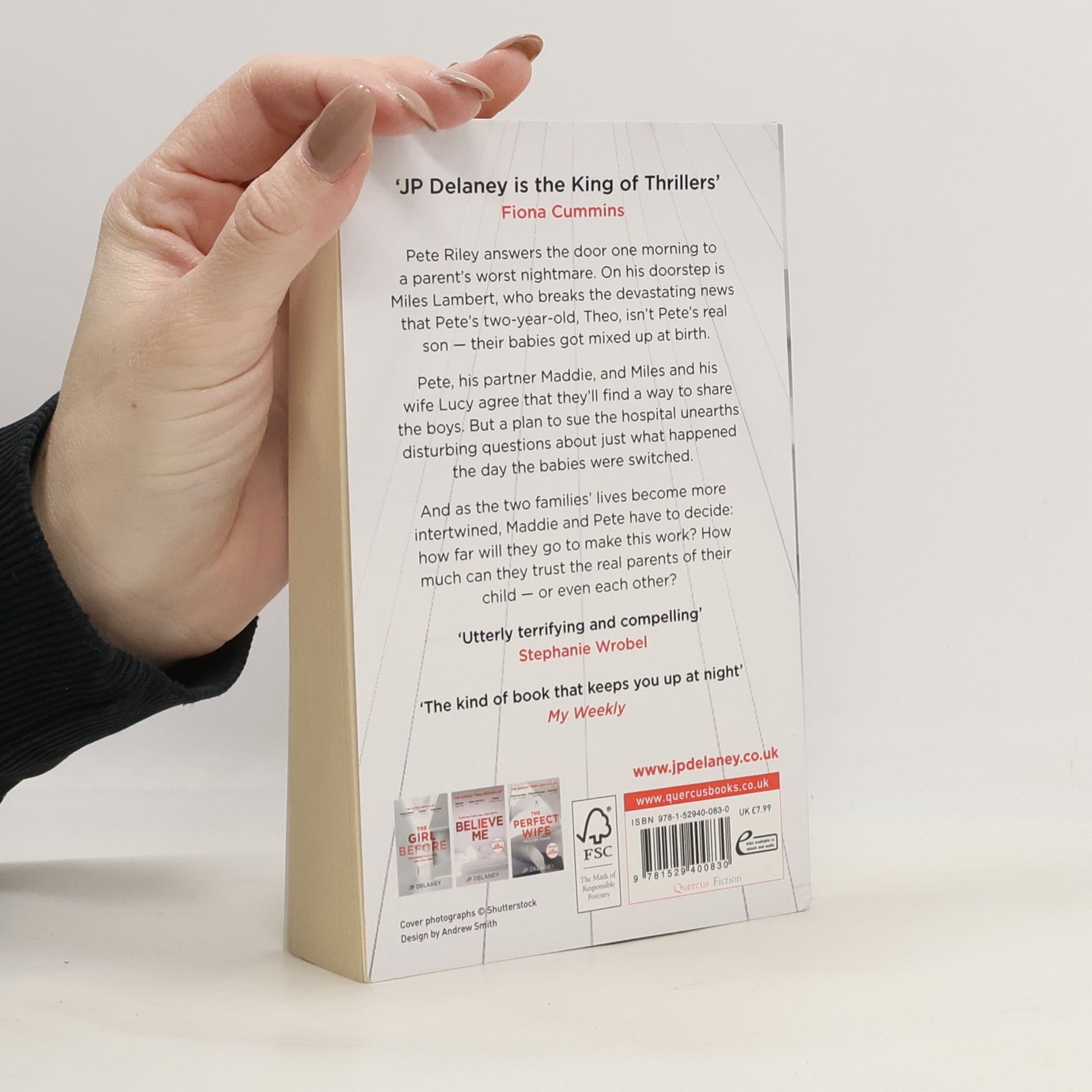 Pete Riley is a stay-at-home dad; his partner Maddie works in advertising. After Pete drops two-year-old Theo off at nursery one morning, he's politely accosted by a man who looks just like Theo. The man, Miles Lambert, breaks the devastating news that Theo is in fact not Pete's son, but his - the two babies got mixed up at hospital, and Miles and his wife Lucy now have the Rileys' son at home. They've already carried out DNA testing to prove it. The two couples agree that, rather than swap the children back, they'll try to involve each other in the children's lives. But a plan to sue the hospital triggers an official investigation that unearths some disturbing questions about just how the babies got mixed up. And when Theo is thrown out of nursery for hitting other children, Pete and Maddie have to ask themselves: how far do they want this arrangement to go? What are the secrets hidden behind the Lamberts' smart front door? And how much can they trust the real parents of their child - or even each other?