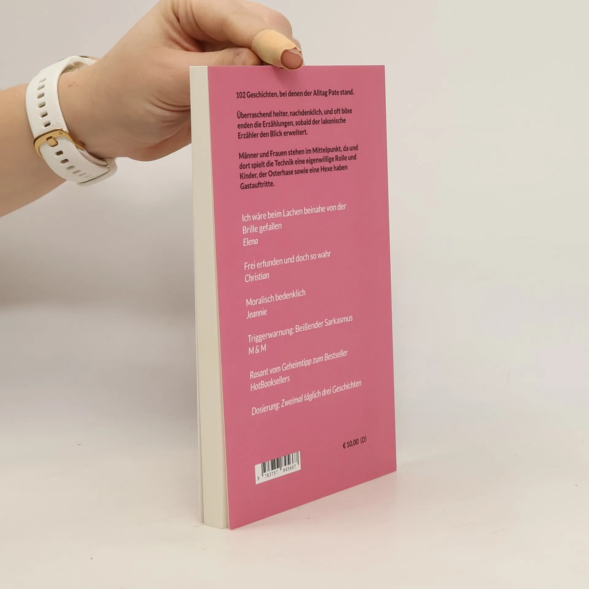 102 Geschichten, die den Alltag spiegeln, überraschen mit Heiterkeit, Nachdenklichkeit und oft bösen Wendungen. Männer, Frauen und Technik stehen im Mittelpunkt, während Kinder, der Osterhase und eine Hexe auftreten. Eine Geschichte handelt von Lorena, die sich mit modernen Methoden der Männerbeschaffung auseinandersetzt.