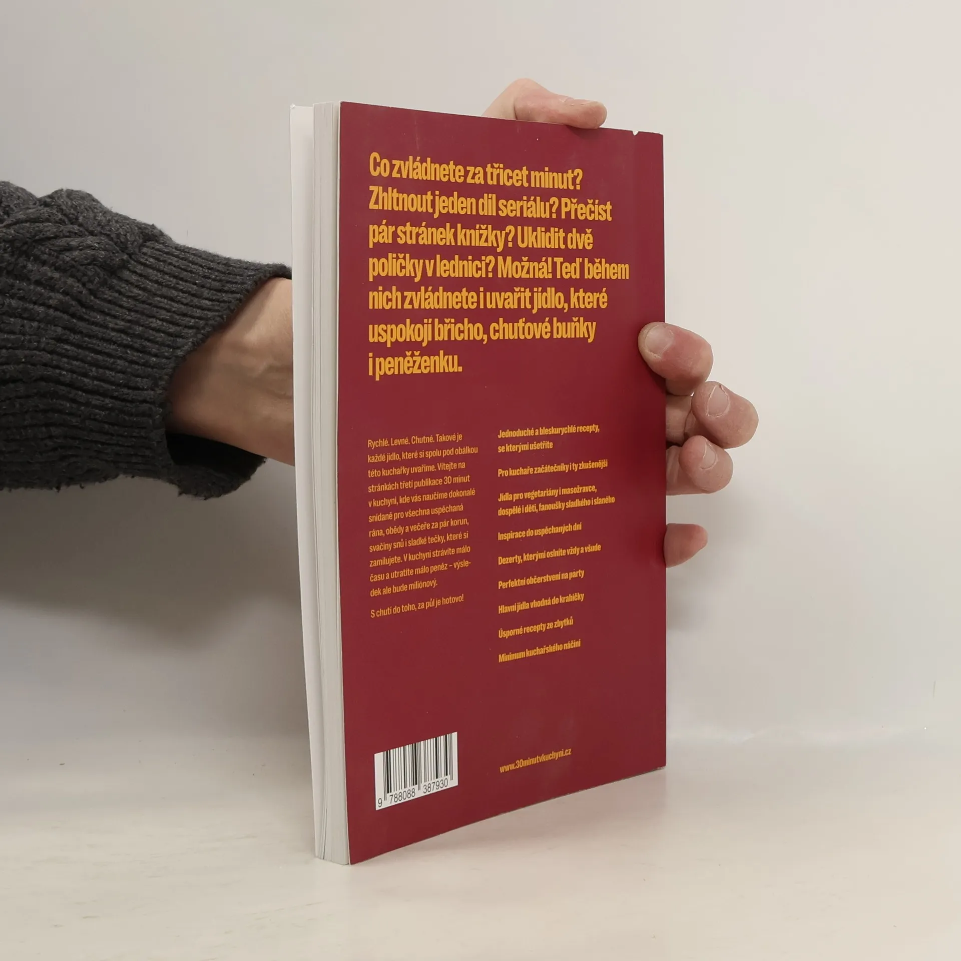 Úplně normální kuchařka pro úplně normální lidi. Taková je tato kniha! Rychle. Levně. Chutně. Jednoduše. Přesně tak vás naučíme vařit! Přidejte se k více než 150 000 lidí, kteří již vaří se značkou 30 minut v kuchyni. Nová publikace plná jedinečných, dokonalých receptů z normálních surovin je tady. Máte rádi jídlo, ale pro to, abyste stáli půl dne u plotny, jste se nenarodili? Chcete si chodit si do kuchyně odpočinout Vařit z jednoduchých surovin, které snadno seženete v běžném obchodě? Nemáte bezedný rozpočet, ale chcete si dopřávat super jídlo za super ceny? Všech 80 receptů z této kuchařky hravě zvládne i začátečník a vystačíte si se surovinami z běžné sámošky. Vsadíme se, že kamkoliv zabodnete prst na tom si pochutná celá rodina. Protože jídlo musí dobře chutnat. Všechny recepty jsou navíc připraveny tak, aby šetřily nejen váš čas, ale také peněženku. Protože levně, nemusí znamenat lacině. Recepty jsou rozděleny do přehledných kapitol.