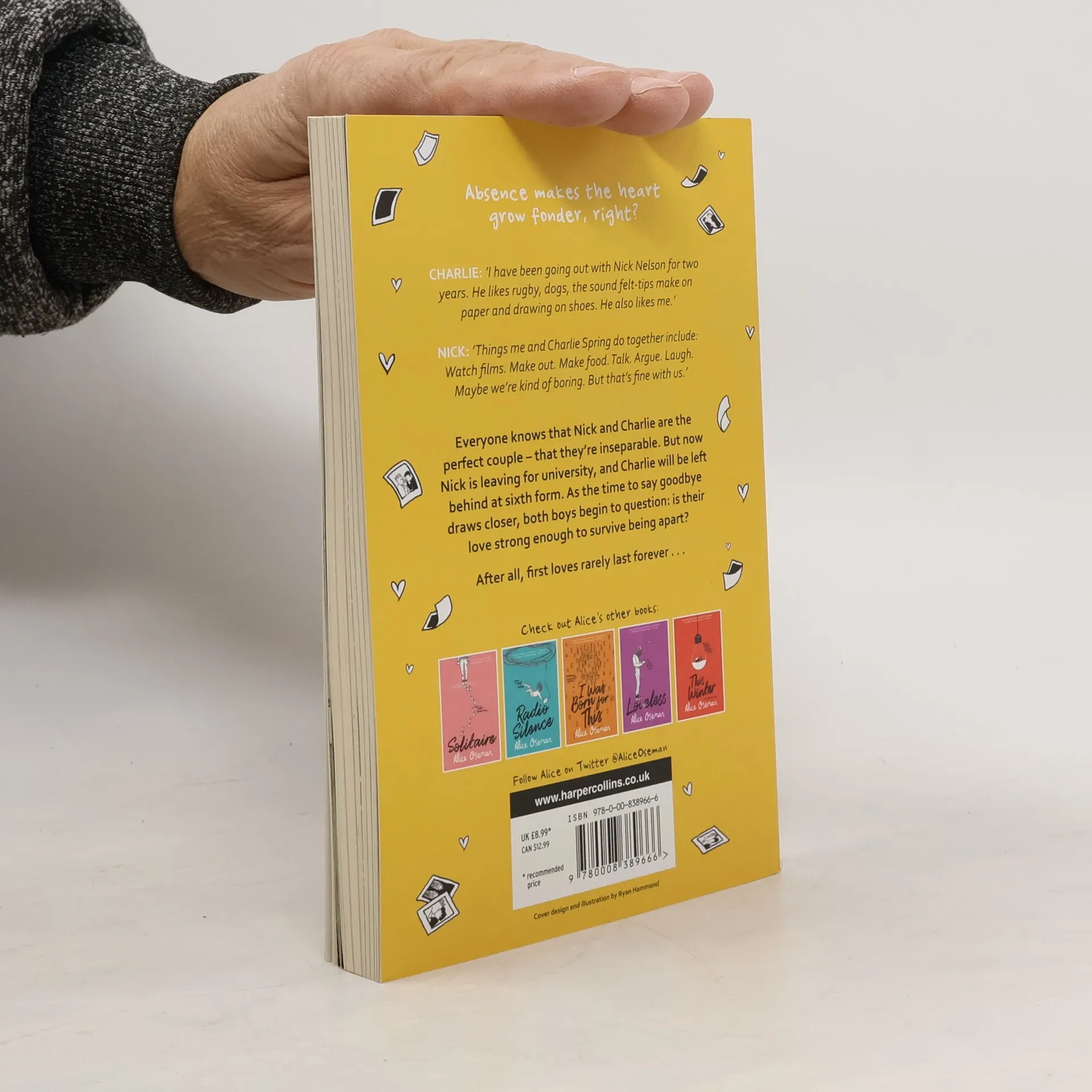 A SUNDAY TIMES TOP 5 CHILDREN'S BESTSELLER A short novella based on the beloved characters from Alice Oseman's acclaimed debut novel Solitaire and graphic novel series Heartstopper - now a major Netflix series. From the author of the 2021 YA Book Prize winning Loveless. Absence makes the heart grow fonder, right? CHARLIE: "I have been going out with Nick Nelson for two years. He likes rugby, Formula 1, dogs, the Marvel universe, the sound felt-tips make on paper, rain and drawing on shoes. He also likes me." NICK: "Things me and Charlie Spring do together include: Watch films. Sit in the same room on different laptops. Text each other from different rooms. Make out. Make food. Make drinks. Get drunk. Talk. Argue. Laugh. Maybe we're kind of boring. But that's fine with us." Everyone knows that Nick and Charlie are the perfect couple - that they're inseparable. But now Nick is leaving for university, and Charlie will be left behind at Sixth Form. Everyone's asking if they're staying together, which is a stupid question - they're 'Nick and Charlie' for God's sake! But as the time to say goodbye gets inevitably closer, both Nick and Charlie question whether their love is strong enough to survive being apart. Or are they delaying the inevitable? Because everyone knows that first loves rarely last forever...