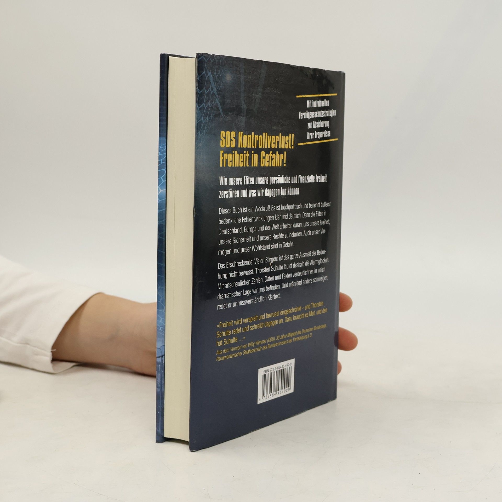 SOS Kontrollverlust! Freiheit in Gefahr! Dieses Buch ist ein Weckruf und thematisiert besorgniserregende Entwicklungen, die unsere persönliche und finanzielle Freiheit bedrohen. Die Eliten in Deutschland, Europa und der Welt arbeiten daran, uns unsere Rechte und unser Vermögen zu entziehen. Viele Bürger sind sich der gesamten Bedrohung nicht bewusst, weshalb Thorsten Schulte die Alarmglocken läutet. Mit klaren Zahlen und Fakten verdeutlicht er die dramatische Lage, während andere schweigen. Er zeigt auf, wie Bundeskanzlerin Angela Merkel gegen Recht und Gesetz verstößt und Brüsseler Technokraten zunehmend Macht an sich reißen, was die Entmündigung der Bürger zur Folge hat. Wenn die Herrschaft des Rechts endet, wird es keine guten Zeiten geben. Es liegt an uns, unsere Freiheit und eine lebenswerte Zukunft zu verteidigen. Wir dürfen unsere Privatsphäre, Meinungsvielfalt, Rechtsstaatlichkeit und unser Bargeld nicht aufgeben. Denn einmal verloren, werden wir unsere Freiheit nie zurückbekommen. Angesichts der riskanten Politik der EZB, die in einem Kollaps der Finanzsysteme enden könnte, bietet das Buch zahlreiche umsetzbare Empfehlungen, um Ihr Vermögen zu schützen. „Lassen Sie uns alle eine Leuchtfackel für unsere Freiheit werden. Wir dürfen nicht kapitulieren!“ – Thorsten Schulte.