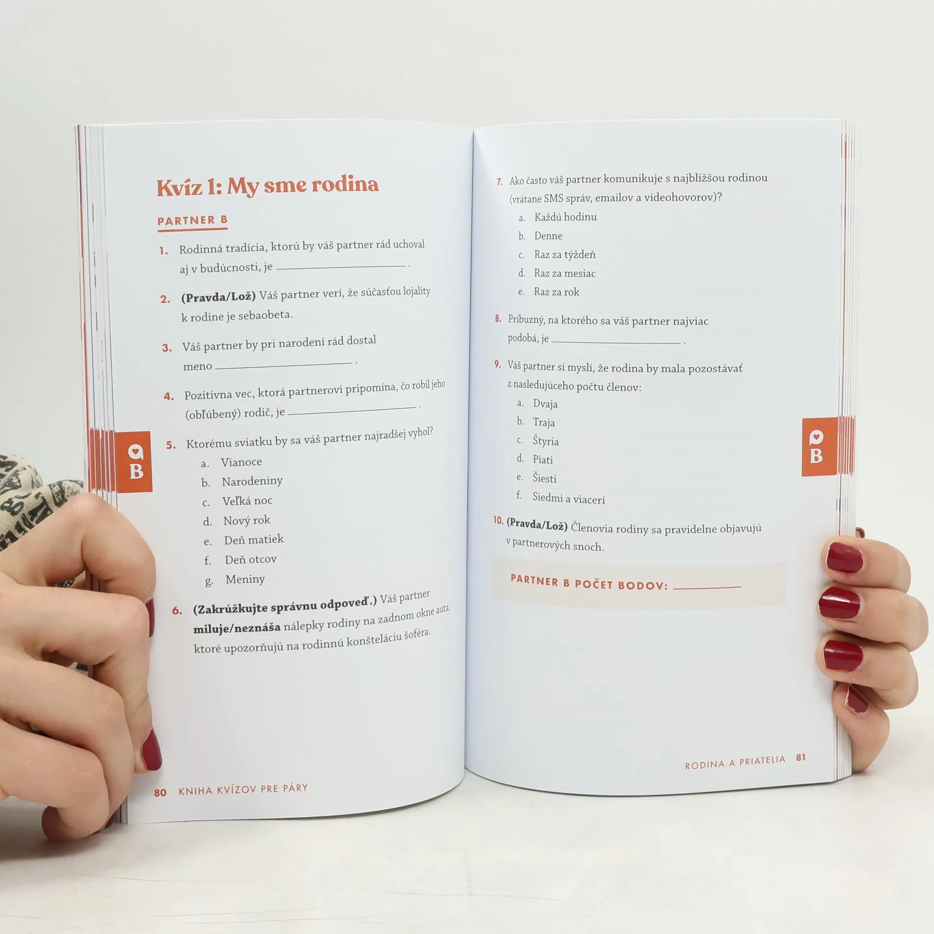 Spoznajte jeden druhého a oživte svoj vzťah. Ak existuje kľúč k harmonickému vzťahu, je ním komunikácia. Či ste spolu štyri mesiace alebo štyridsať rokov, viac než stovka odľahčených otázok v Knihe kvízov pre páry podnieti zmysluplné rozhovory a zapáli iskru. Objavíte o sebe nové veci, lepšie sa spoznáte a dokonca sa pri tom aj zabavíte. Spomeňte si na svoju minulosť, ponorte sa hlbšie do prítomnosti a vybudujte si šťastnú spoločnú budúcnosť. Otázky v tejto knihe postupujú od základných až k takým, pri ktorých sa budete musieť skutočne zamyslieť. Sú vhodné pre partnerov, ktorí sa ešte len spoznávajú, ale aj tých, ktorí si myslia, že sa už dokonale poznajú.