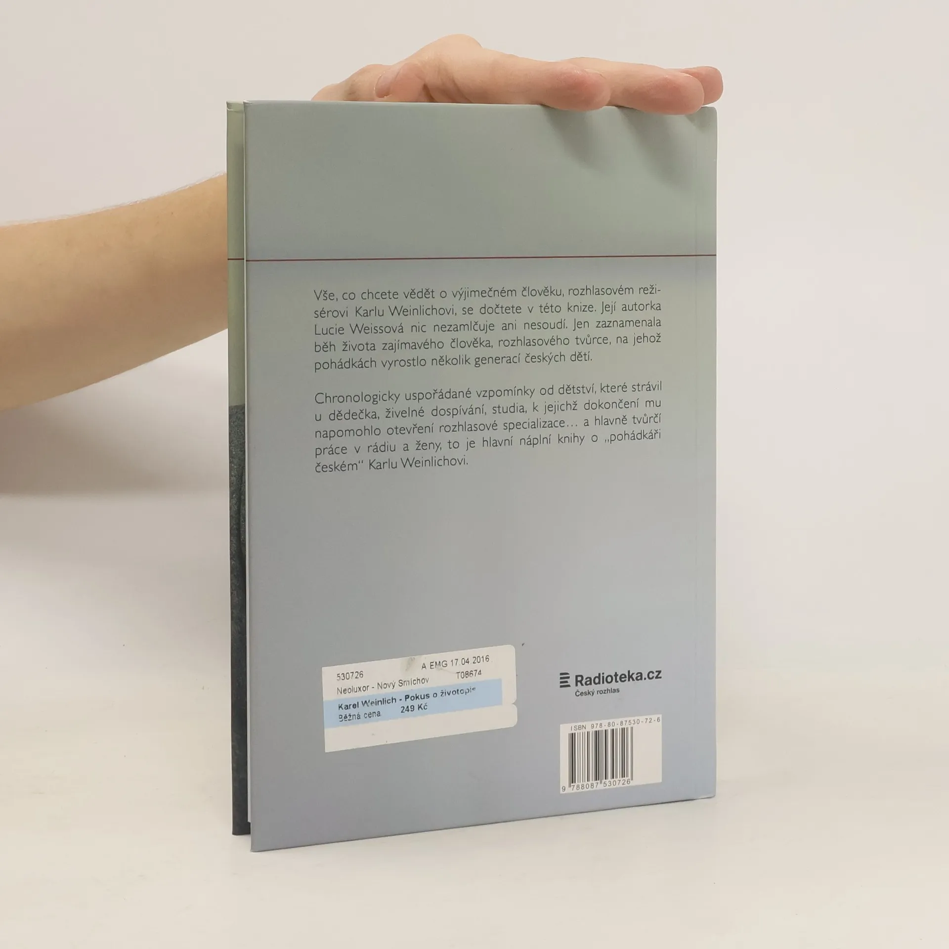Knižní memoáry rozhlasového režiséra Karla Weinlicha. Autorka Lucie Weissová, Weinlichova dlouholetá kolegyně, nic nezamlčuje ani nesoudí. Prostě jen zaznamenala běh života zajímavého člověka, rozhlasového tvůrce, na jehož pohádkách vyrostlo několik generací českých dětí. Chronologicky uspořádané vzpomínky od dětství, které strávil u svého dědečka, protože otec byl neznámý a maminka žila daleko, živelné dospívání, studia, k jejichž dokončení mu napomohlo otevření rozhlasové specializace… a hlavně tvůrčí práce v rádiu a ženy, to je hlavní náplní pozoruhodné knihy o Karlu Weinlichovi.
