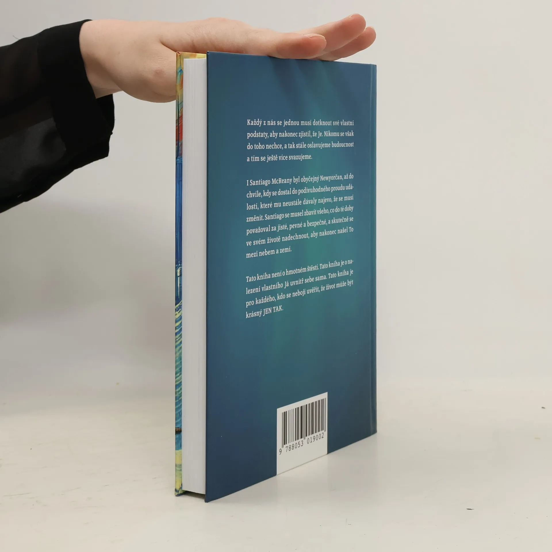Každý z nás se jednou musí dotknout své vlastní podstaty, aby nakonec zjistil, že Je. Nikomu se však do toho nechce, a tak stále oslavujeme budoucnost a tím se ještě více svazujeme. I Santiago McReany byl obyčejný Newyorčan, až do chvíle, kdy se dostal do podivuhodného proudu událostí, které mu neustále dávaly najevo, že se musí změnit. Santiago se musel zbavit všeho, co do té doby považoval za jisté, pevné a bezpečné, a skutečně se ve svém životě nadechnout, aby nakonec našel To mezi nebem a zemí. Tato kniha není o hmotném štěstí. Tato kniha je o nalezení vlastního Já uvnitř sebe sama. Tato kniha je pro každého, kdo se nebojí uvěřit, že život může být krásný JEN TAK.