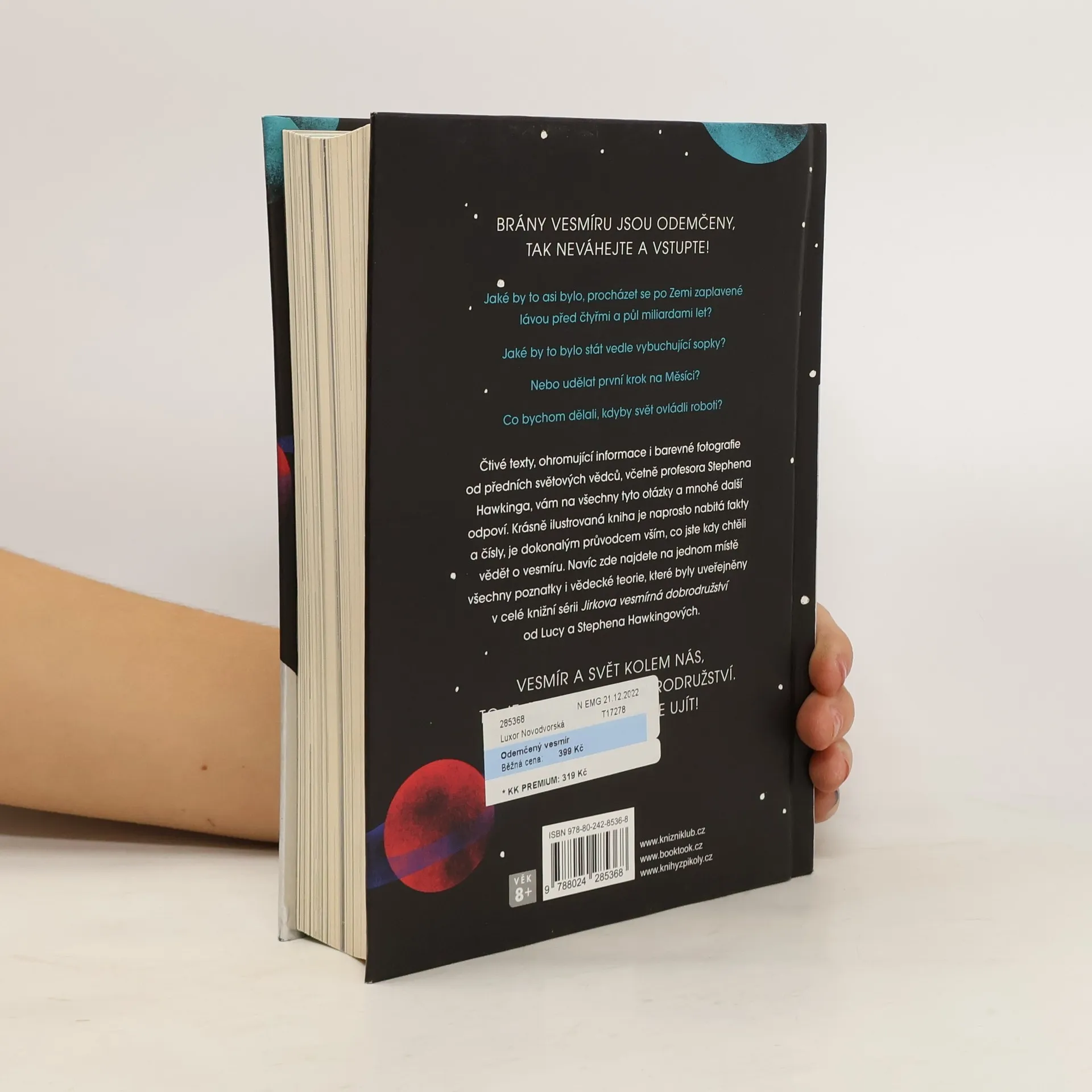 Přemýšleli jste někdy, jak vznikl vesmír? Jak moc ovlivňuje veškeré dění na planetě Zemi? Tušíte, co se děje v naší sluneční soustavě? Co je zapotřebí, aby se lidé dostali na Měsíc, nebo dokonce na Mars? A co byste dělali, kdybyste mohli cestovat nejen prostorem, ale i časem? Sbírka textů ohromujících informací i barevných fotografií od předních světových vědců, včetně nejslavnějšího teoretického fyzika na světě, profesora Stephena Hawkinga, vám na všechny tyto otázky a mnohé další odpoví. Vesmír a svět kolem nás jsou jedno velké dobrodružství. Tak si ho nenechte ujít! Prozkoumejte nejzazší kouty naší sluneční soustavy a staňte se vědci!