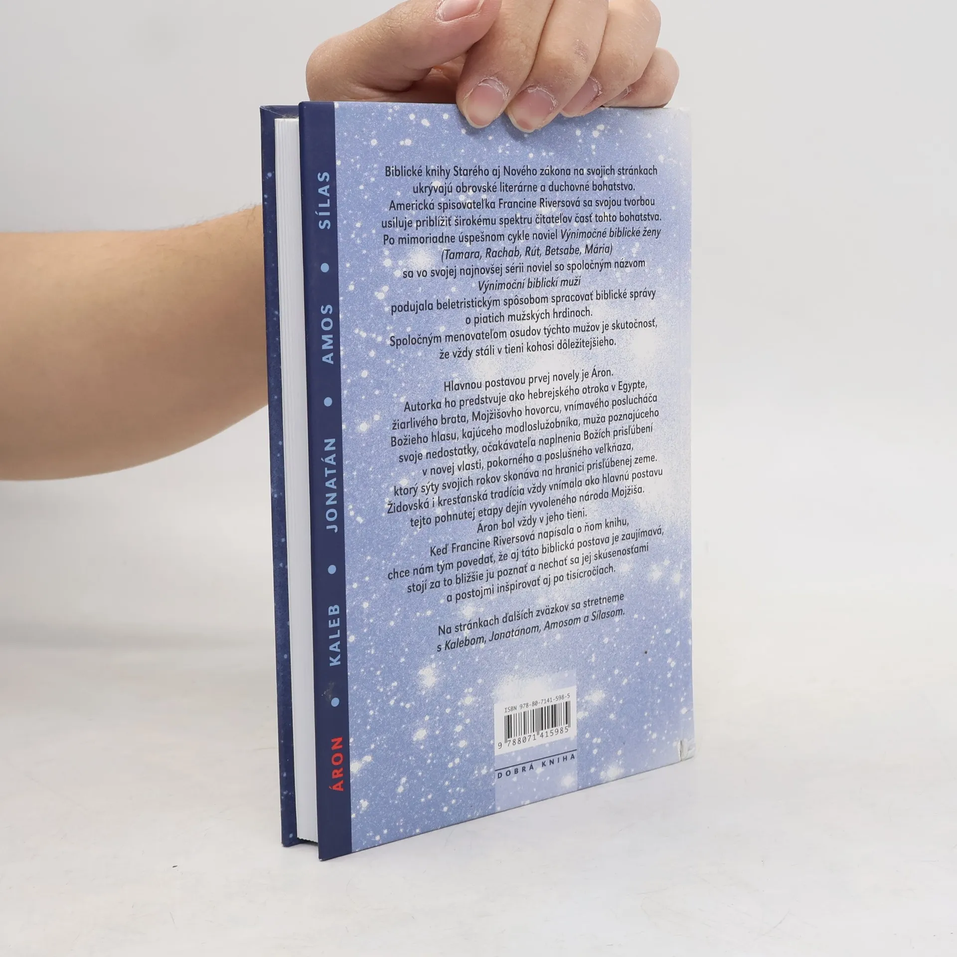Biblické knihy Starého aj Nového zákona na svojich stránkach ukrývajú obrovské literárne a duchovné bohatstvo. Americká spisovateľka Francine Riversová sa svojou tvorbou usiluje priblížiť širokému spektru čitateľov časť tohto bohatstva. Po mimoriadne úspešnom cykle noviel Výnimočné biblické ženy (Tamara, Rachab, Rút, Betsabe, Mária) sa vo svojej najnovšej sérii noviel so spoločným názvom Výnimoční biblickí muži podujala beletristickým spôsobom spracovať biblické správy o piatich mužských hrdinoch. Spoločným menovateľom osudov týchto mužov je skutočnosť, že vždy stáli v tieni kohosi dôležitejšieho. Hlavnou postavou prvej novely je Áron. Autorka ho predstavuje ako hebrejského otroka v Egypte, žiarlivého brata, Mojžišovho hovorcu, vnímavého poslucháča Božieho hlasu, kajúceho modloslužobníka, muža poznajúceho svoje nedostatky, očakávateľa naplnenia Božích prisľúbení v novej vlasti, pokorného a poslušného veľkňaza, ktorý sýty svojich rokov skonáva na hranici prisľúbenej zeme. Židovská i kresťanská tradícia vždy vnímala ako hlavnú postavu tejto pohnutej etapy dejín vyvoleného národa Mojžiša. Áron bol vždy v jeho tieni. Keď Francine Riversová napísala o ňom knihu, chce nám tým povedať, že aj táto biblická postava je zaujímavá, stojí za to bližšie ju poznať a nechať sa jej skúsenosťami a postojmi inšpirovať aj po tisícročiach.