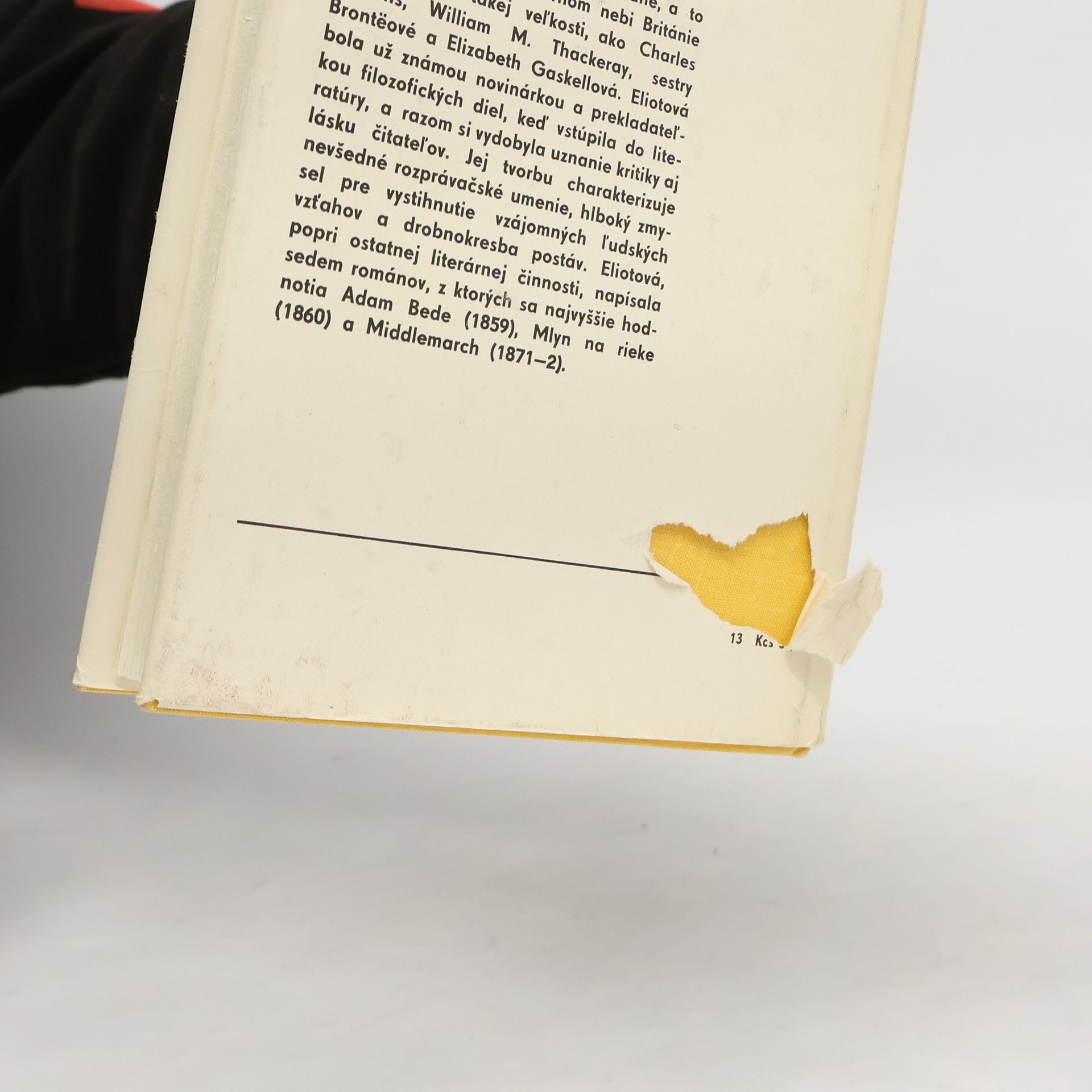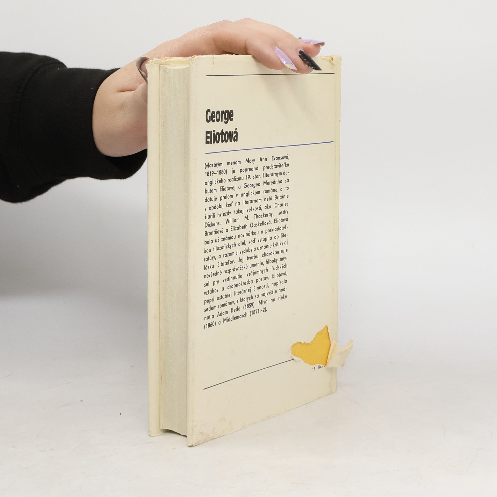 George Eliotová (vlastným menom Mary Ann Evansová) je popredná predstaviteľka anglického realizmu 19. stor. Literárnym debutom Elitovej a Georgea Mereditha sa datuje prelom v anglickom románe, a to v období, keď na literárnom nebi Británie žiarili hviezdy takej veľkosti, ako Charles Dickens, WilliamM. Thackeray, sestry Brontëové a Elizabeth Gaskellová. Eliotová bola už známou novinárkou a prekladateľkou filozofických diel, keď vstúpila do literatúry, a razom si vydobyla uznanie kritiky aj lásku čitateľov. Jej tvorbu charakterizuje nevšedné rozprávačské umenie, hlboký zmysel pre vystihnutie vzájomných ľudských vzťahov a drobnokresba postáv. Eliotová, popri ostatnej literárnej činnosti, napísala sedem románov, z ktorých sa najvyššie hodnotia Adam Bede (1859), Mlyn na rieke (1860) a Middlemarch (1871 - 1872).