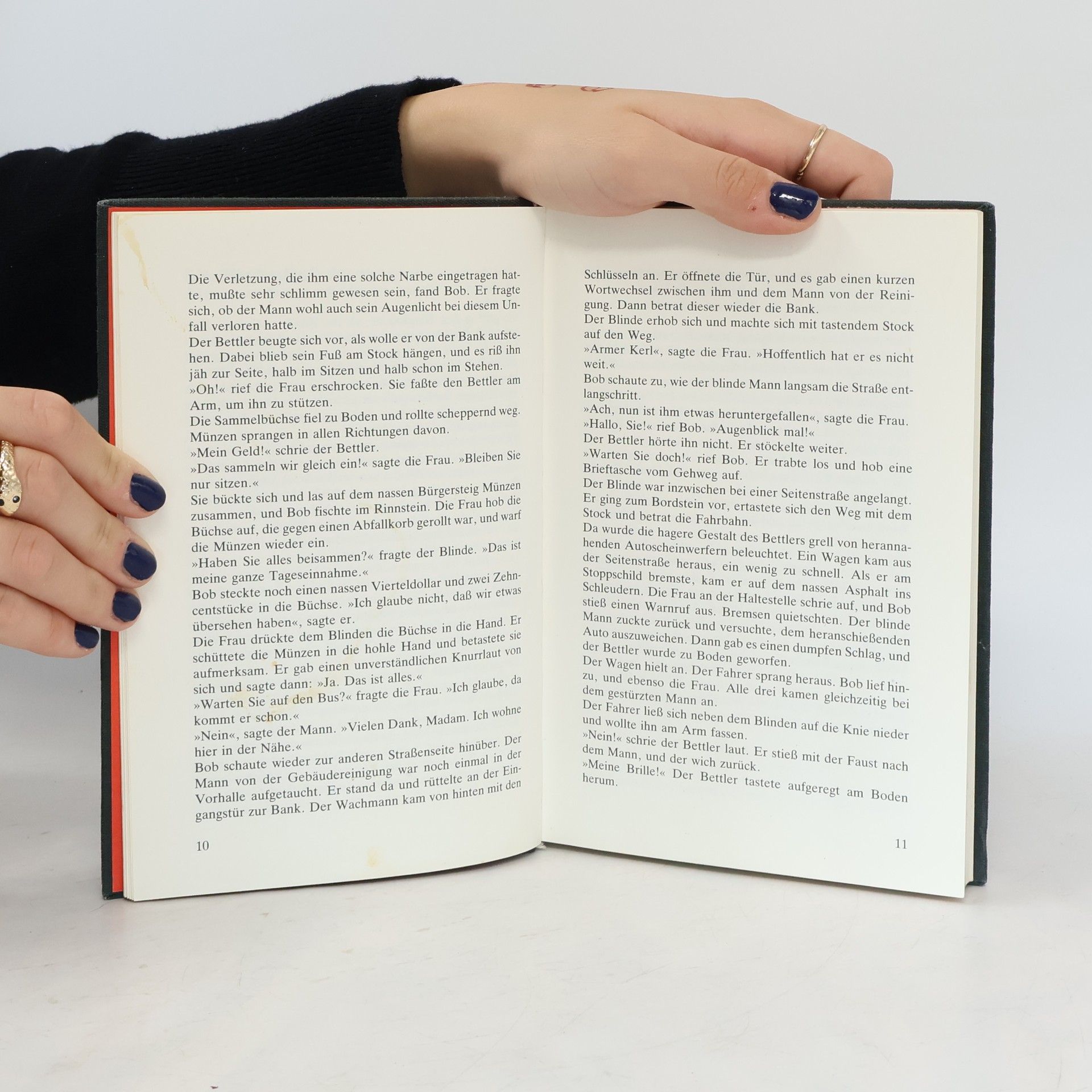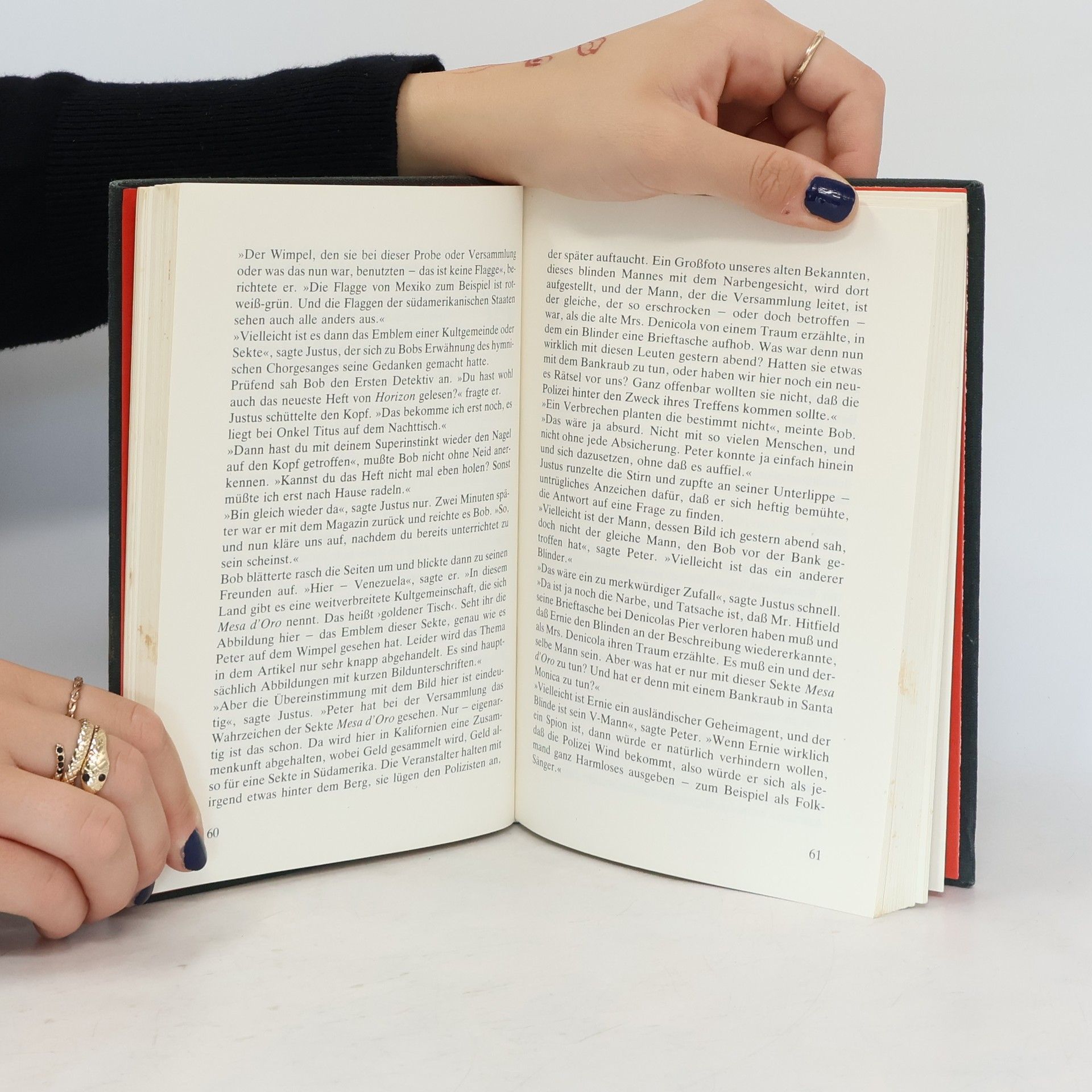 Ist das Narbengesicht wirklich blind? Zweifel erscheinen angebracht, nachdem ziemlich sicher ist, daß dieser seltsame Mann bei einem Banküberfall Schmiere gestanden hat. Offene und ungeklärte Fragen haben die drei ??? schon immer interessiert. Eine verlorene Brieftasche verhilft ihnen zum Einstieg in einen Kriminalfall, bei dem es um weit mehr als nur einen Banküberfall geht.