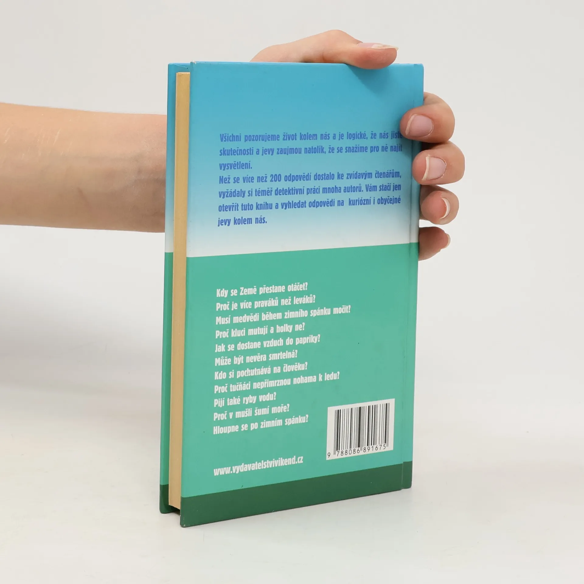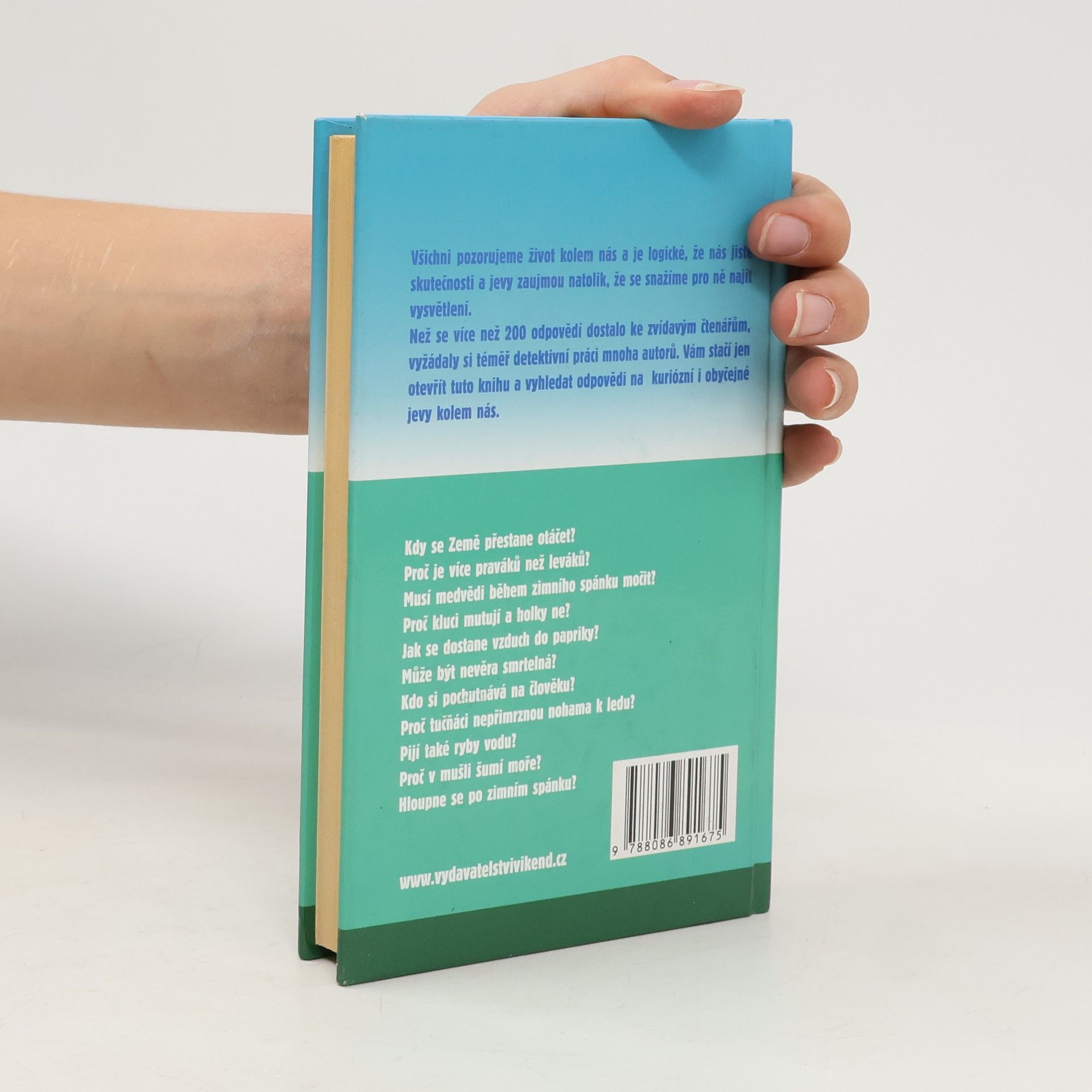 Než se více než 200 odpovědí v této knize dostalo ke zvídavým čtenářům, vyžádaly si téměř detektivní práci mnoha autorů. Vám stačí jen otevřít tuto knihu a vyhledat odpovědi na kuriózní i obyčejné jevy kolem nás. Kdy se Země přestane otáčet? Proč je více praváků než leváků? Musí medvědi během zimního spánku močit? Proč kluci mutují a holky ne? Kdo si pochutnává na člověku? Proč tučňáci nepřimrznou nohama k ledu? Pijí také ryby vodu? A mnoho dalších záludných otázek a odpovědí.
