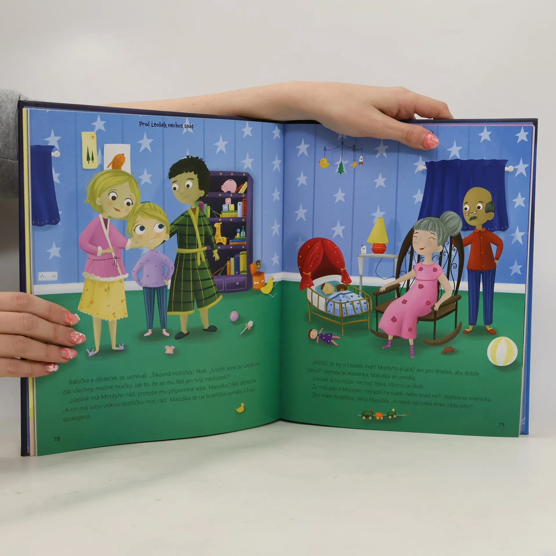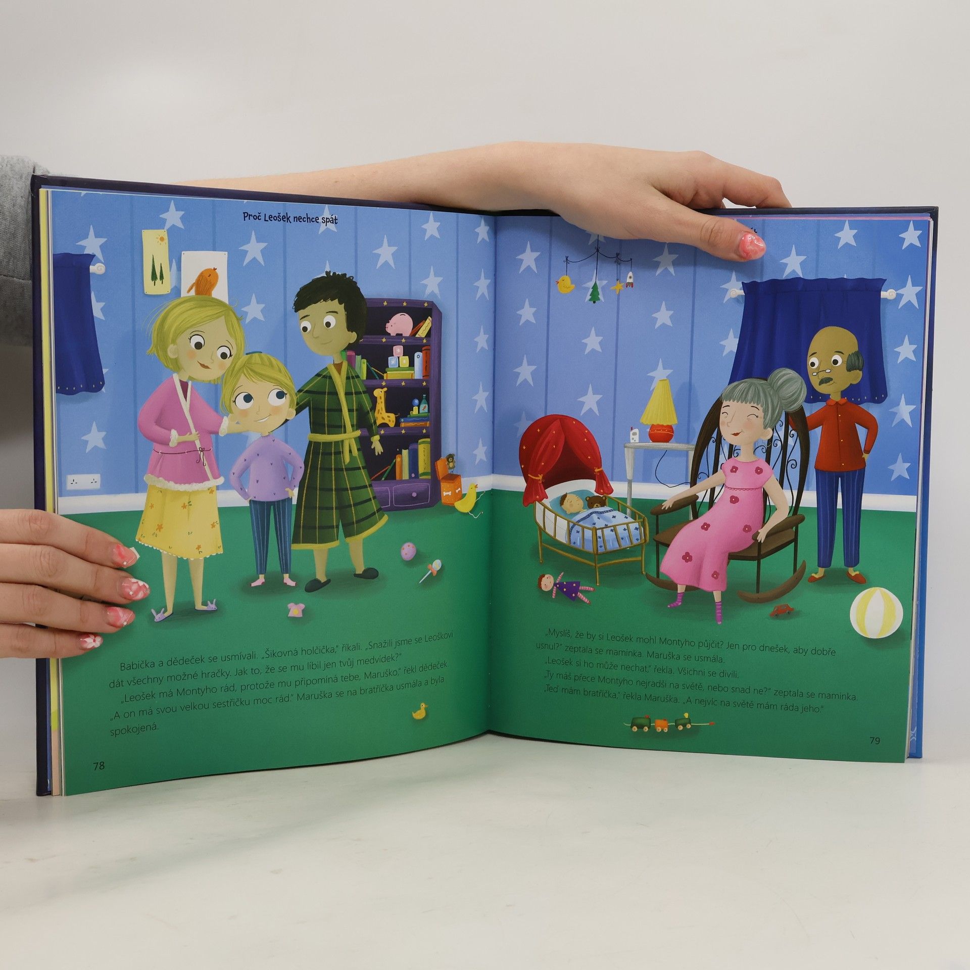 Krátké, jednoduché příběhy o dětech určené k předčítání před spaním doprovázejí celostránkové ilustrace. Pro předškolní děti.