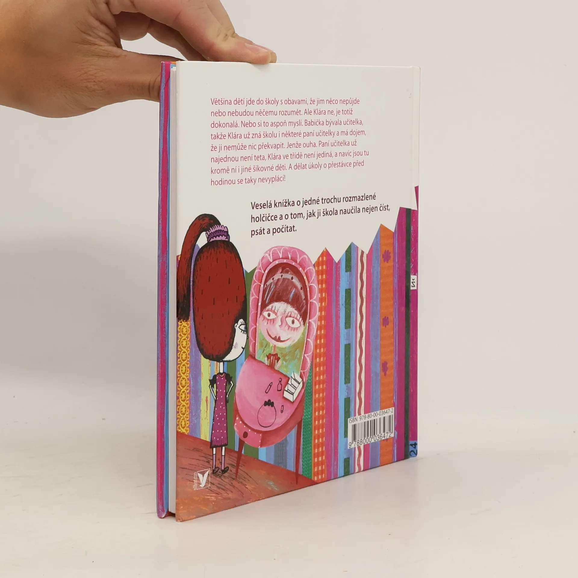 Většina dětí jde do školy s obavami, že jim něco nepůjde nebo nebudou něčemu rozumět. Ale Klára ne, je totiž dokonalá. Nebo si to aspoň myslí. Babička bývala učitelka, takže Klára už zná školu i některé paní učitelky a má dojem, že ji nemůže nic překvapit. Jenže ouha. Paní učitelka už najednou není teta, Klára ve třídě není jediná, a navíc jsou tu kromě ní i jiné šikovné děti. A dělat úkoly o přestávce před hodinou se taky nevyplácí! Veselá knížka o jedné trochu rozmazlené holčičce a o tom, jak ji škola naučila nejen číst, psát a počítat.