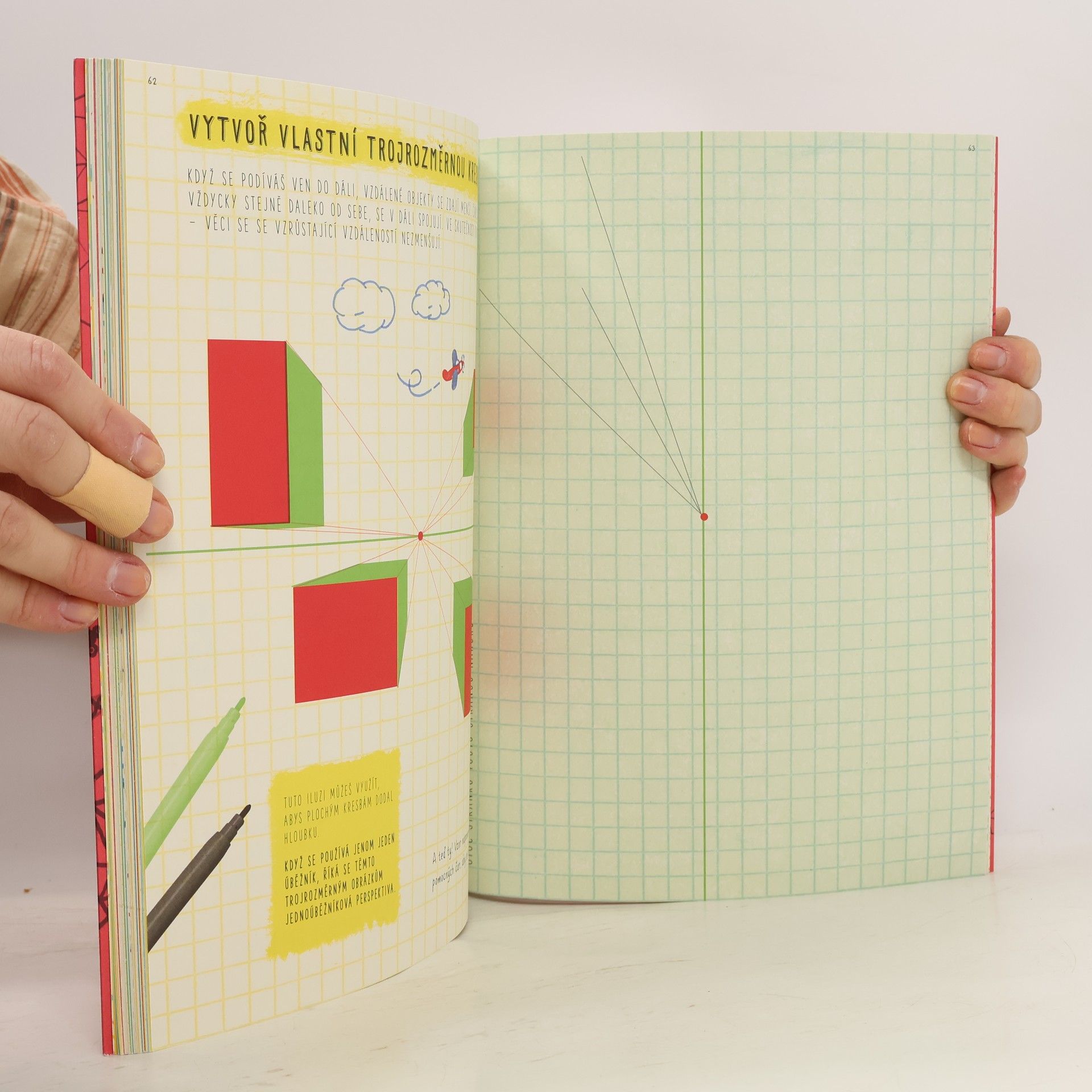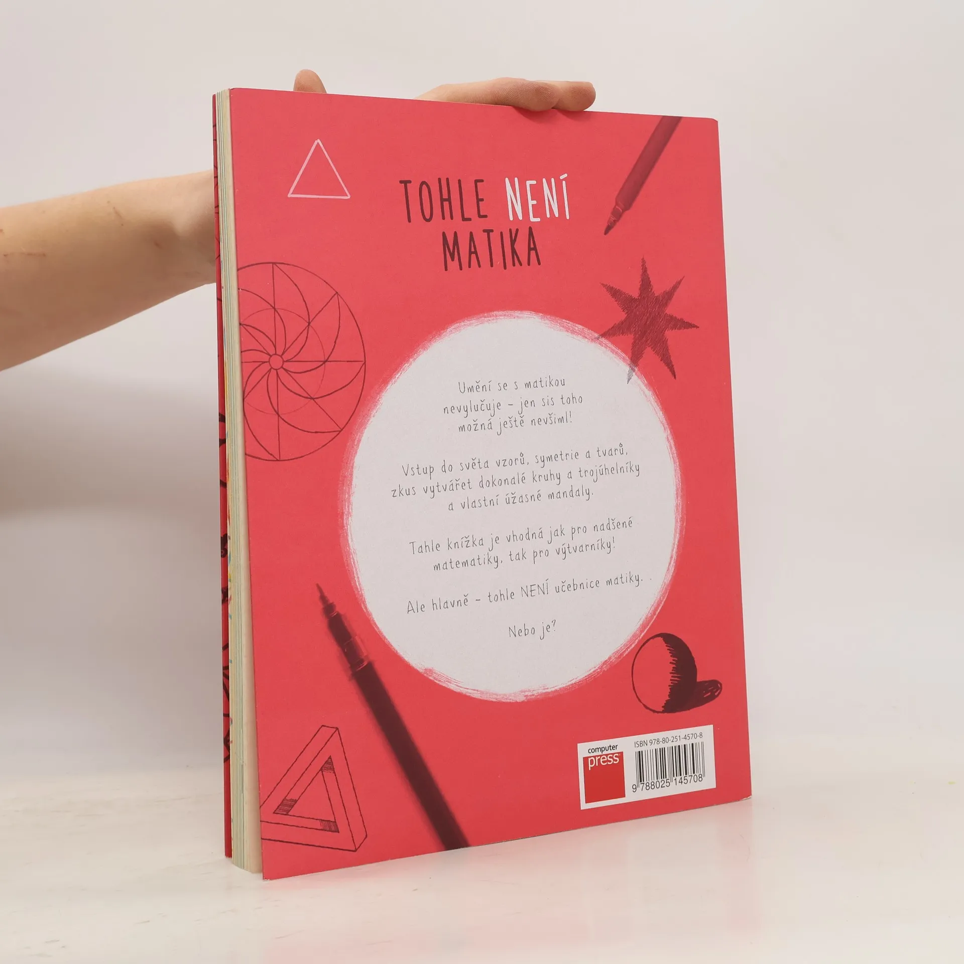 Knížka aktivit, kterou úča nesmí vidět Projdi si postupy a vytvoř ohromné množství matematických vzorů a tvarů. Všimni si, jak se pyramidy a spirály skládají z různých vzorů, nauč se kreslit dokonalý kruh, ďábelské paraboly, nekonečný trojúhelník atd. V knížce najdeš spoustu místa pro vytváření a vybarvování vlastních matematických uměleckých děl. Na konci jsou pak prázdné stránky s mřížkami, kde můžeš kreslit další a další obrazy! Tahle knížka je vhodná jak pro nadšené matematiky, tak pro výtvarníky. Ale hlavně – tohle NENÍ učebnice matiky. Nebo je?