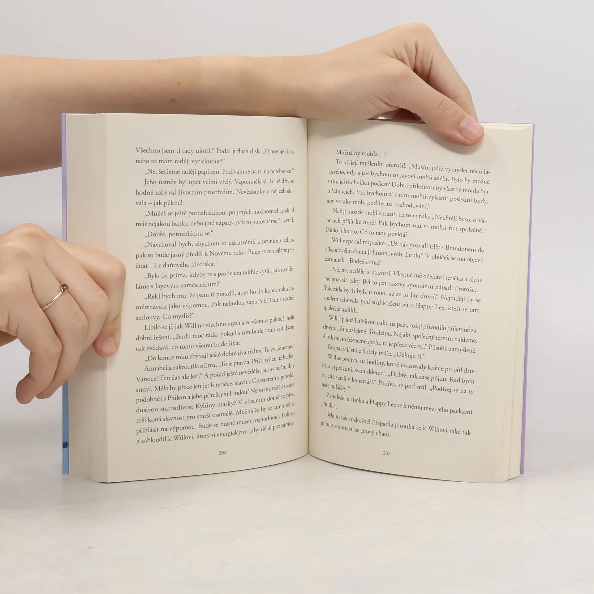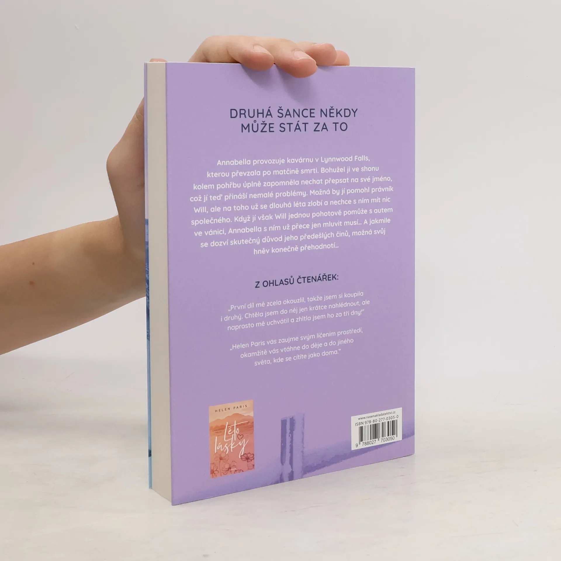 Annabellina existence je v ohrožení, potíží v její kavárně je po matčině stále víc. Celé městečko Lynnwood Falls stojí při ní – včetně Willa. Když Annabella jedné studené zimní noci uvízne s autem, je to on, kdo ji přispěchá na pomoc. Přitom s ním vlastně není vůbec zadobře, a vyhýbá se mu už od té doby, kdy ji bez omluvy nevyzvedl na závěrečný školní ples, na který se tolik těšila. Když se později dozví jeho pravé důvody, velice ji to zasáhne. Na večírku přátel Elly a Brandona ho pod větvičkou jmelí políbí a pak se to stane: až po uši se zamiluje. Avšak Will se zapřísáhl, že si nikdy žádný pevný vztah nedovolí... Čistá romantika, dobrosrdečné postavy a spousta dramatických scén, barvitě vylíčených do posledních podrobností – to vše nabízí druhý díl romantické řady odehrávající se v tentokrát zasněženém a vánočně naladěném idylickém maloměstě Lynnwood Falls ve státě Maine. Kromě poutavého příběhu nás autorka seznámí i se životem a zvyky v této oblasti USA.