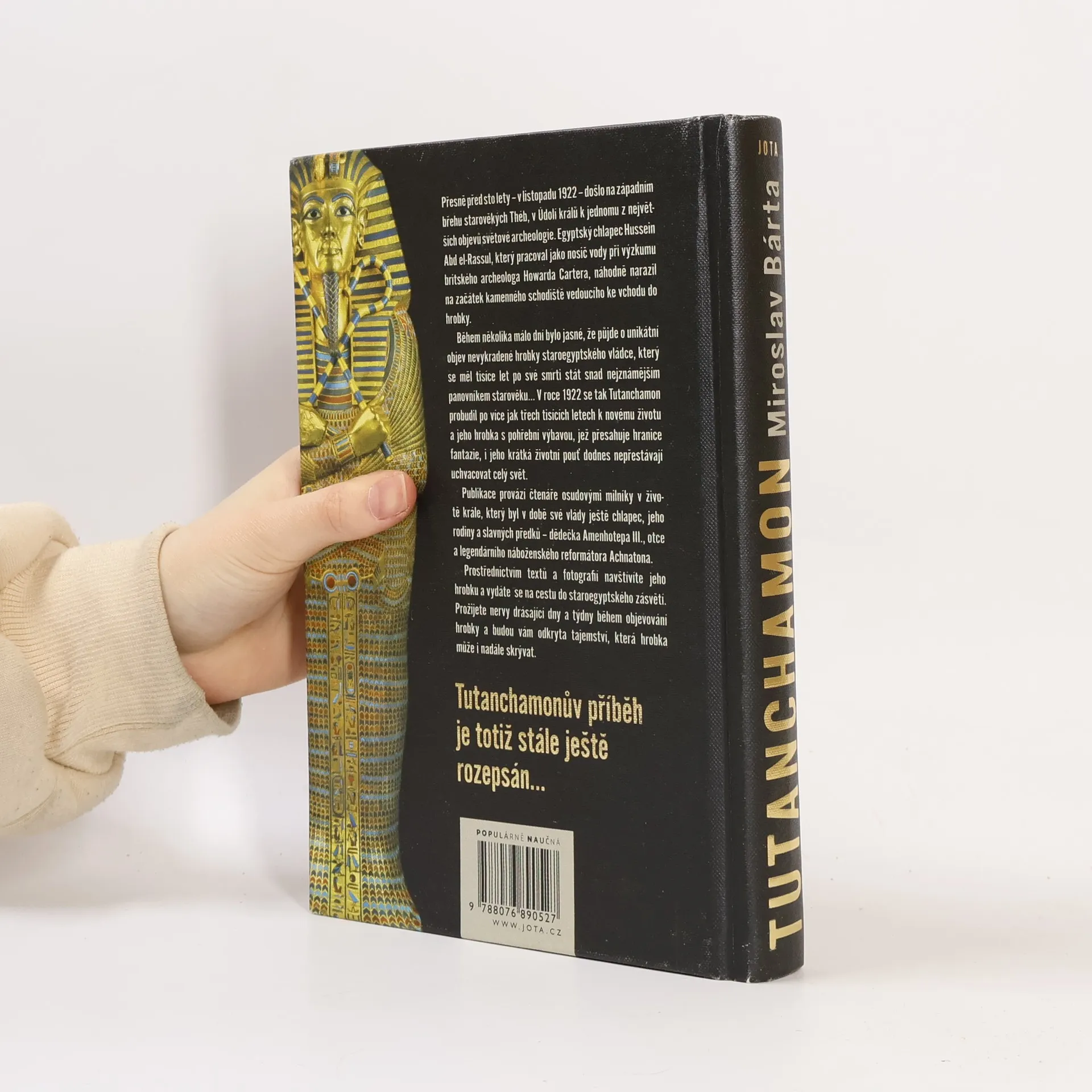 Přesně před sto lety – v listopadu 1922 – došlo na západním břehu starověkých Théb, v Údolí králů k jednomu z největších objevů světové archeologie. Egyptský chlapec Hussein Abd el-Rassul, který pracoval jako nosič vody při výzkumu britského archeologa Howarda Cartera, náhodně narazil na začátek kamenného schodiště vedoucího ke vchodu do hrobky. Během několika málo dní bylo jasné, že půjde o unikátní objev nevykradené hrobky staroegyptského vládce, který se měl tisíce let po své smrti stát snad nejznámějším panovníkem starověku… V roce 1922 se tak Tutanchamon probudil po více jak třech tisících letech k novému životu a jeho hrobka s pohřební výbavou, jež přesahuje hranice fantazie, i jeho krátká životní pouť dodnes nepřestávají uchvacovat celý svět. Publikace provází čtenáře osudovými milníky v životě krále, který byl v době své vlády ještě chlapec, jeho rodiny a slavných předků – dědečka Amenhotepa III., otce a legendárního náboženského reformátora Achnatona. Prostřednictvím textů a fotografií navštívíte jeho hrobku a vydáte se na cestu do staroegyptského zásvětí. Prožijete nervy drásající dny a týdny během objevování hrobky a budou vám odkryta tajemství, která hrobka může i nadále skrývat. Tutanchamonův příběh je totiž stále ještě rozepsán…