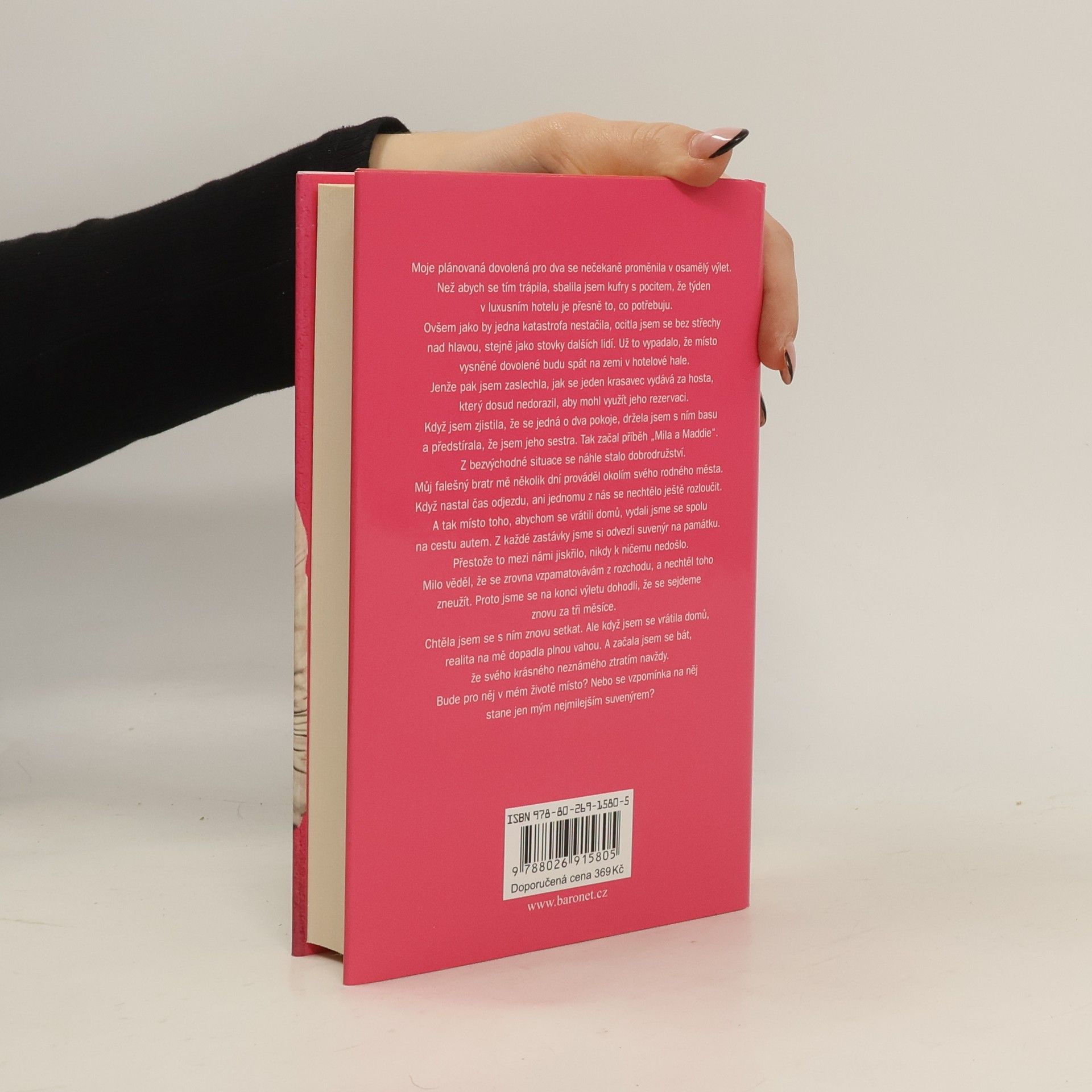 Moje plánovaná dovolená pro dva se nečekaně proměnila v osamělý výlet. Místo abych se trápila, sbalila jsem kufry s pocitem, že týden v luxusním hotelu je přesně to, co potřebuji. Ale brzy jsem se ocitla bez střechy nad hlavou, stejně jako stovky dalších lidí. Když už to vypadalo, že budu spát na zemi v hotelové hale, zaslechla jsem, jak se jeden krasavec vydává za hosta, který dosud nedorazil, aby mohl využít jeho rezervaci. Když jsem zjistila, že se jedná o dva pokoje, začala jsem se vydávat za jeho sestru. Tak začal příběh „Mila a Maddie“. Z bezvýchodné situace se stalo dobrodružství, kdy mě můj falešný bratr prováděl okolím svého rodného města. Když nastal čas odjezdu, ani jednomu z nás se nechtělo rozloučit, a tak jsme se místo návratu domů vydali na cestu autem. Z každé zastávky jsme si odvezli suvenýr na památku. I když mezi námi jiskřilo, nikdy k ničemu nedošlo, protože Milo věděl, že se vzpamatovávám z rozchodu. Na konci výletu jsme se dohodli, že se sejdeme za tři měsíce. Když jsem se vrátila domů, realita na mě dopadla plnou vahou a začala jsem se bát, že svého krásného neznámého ztratím navždy. Bude pro něj v mém životě místo, nebo se vzpomínka na něj stane jen mým nejmilejším suvenýrem?
