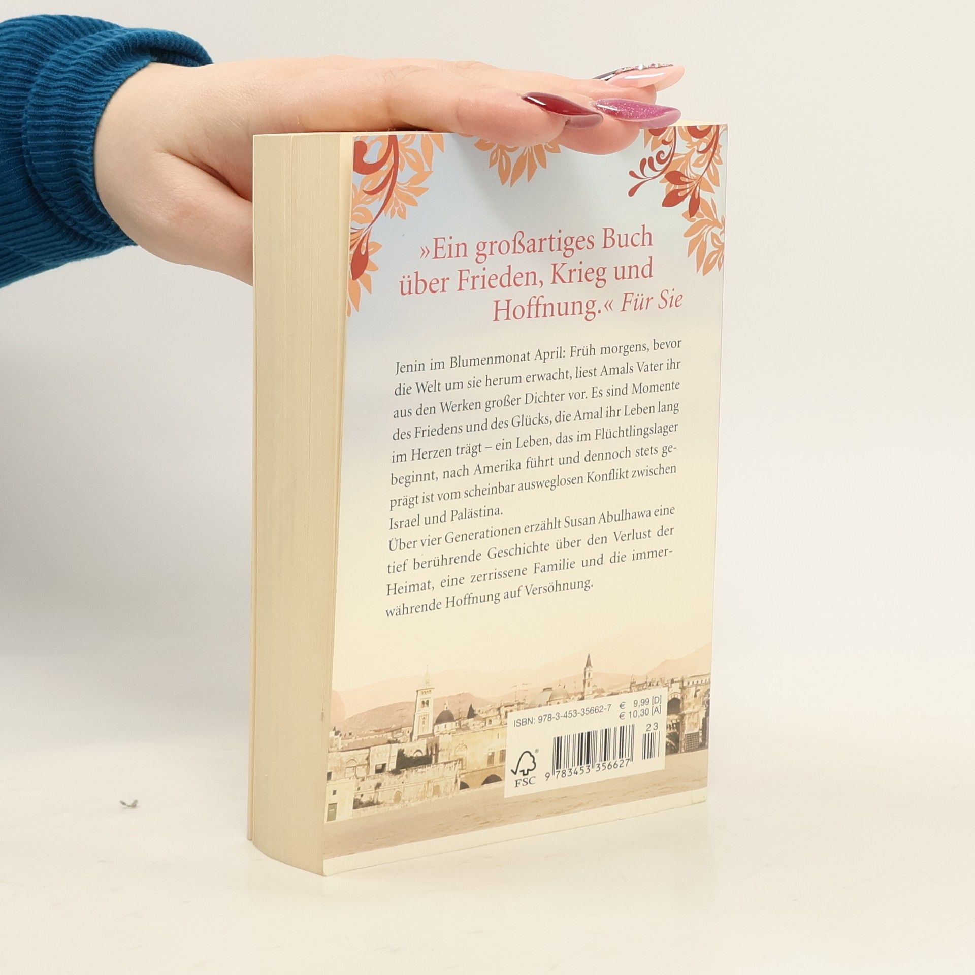 Vier Generationen, eine verlorene Heimat und die immerwährende Hoffnung auf Versöhnung Jenin im Blumenmonat April: Frühmorgens, bevor die Welt um sie herum erwacht, liest Amals Vater ihr aus den Werken großer Dichter vor. Es sind Momente des Friedens und des Glücks, die Amal ihr Leben lang im Herzen trägt — ein Leben, das im Flüchtlingslager beginnt, nach Amerika führt und dennoch stets geprägt ist vom scheinbar ausweglosen Konflikt zwischen Israel und Palästina. Über vier Generationen erzählt Susan Abulhawa eine tief berührende Geschichte über den Verlust der Heimat, eine zerrissene Familie und die immerwährende Hoffnung auf Versöhnung.