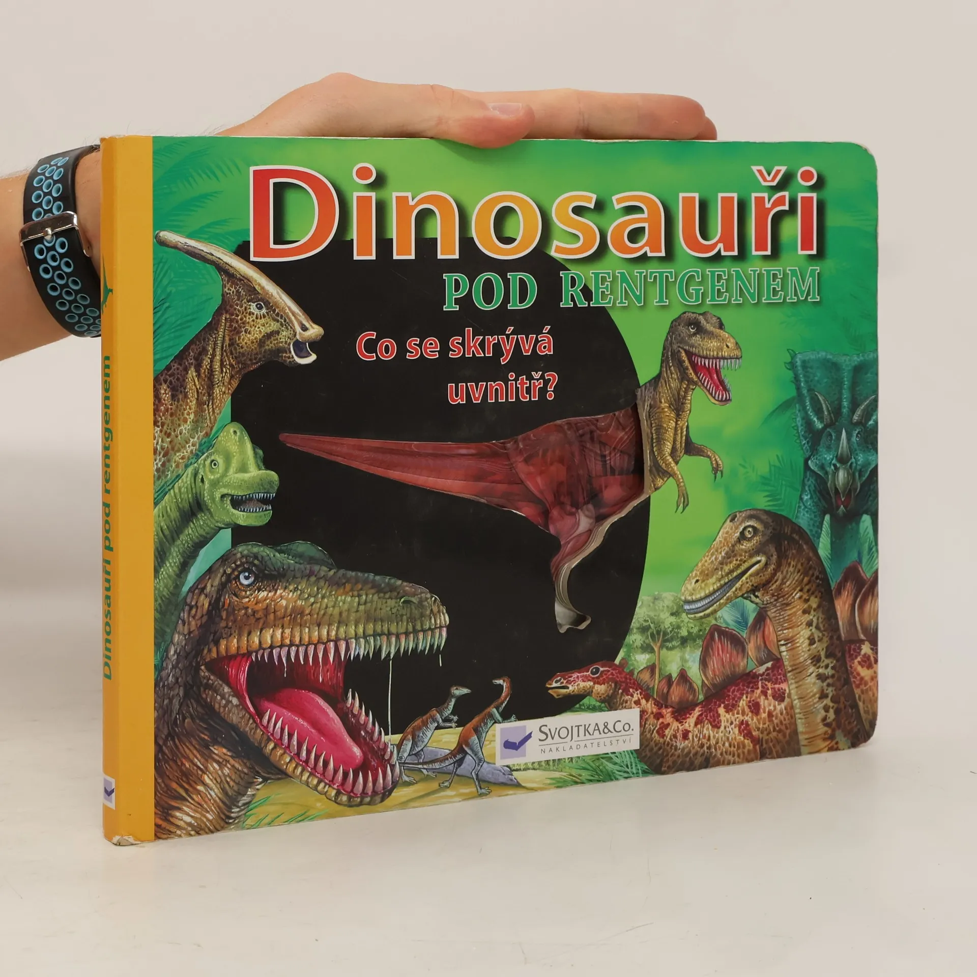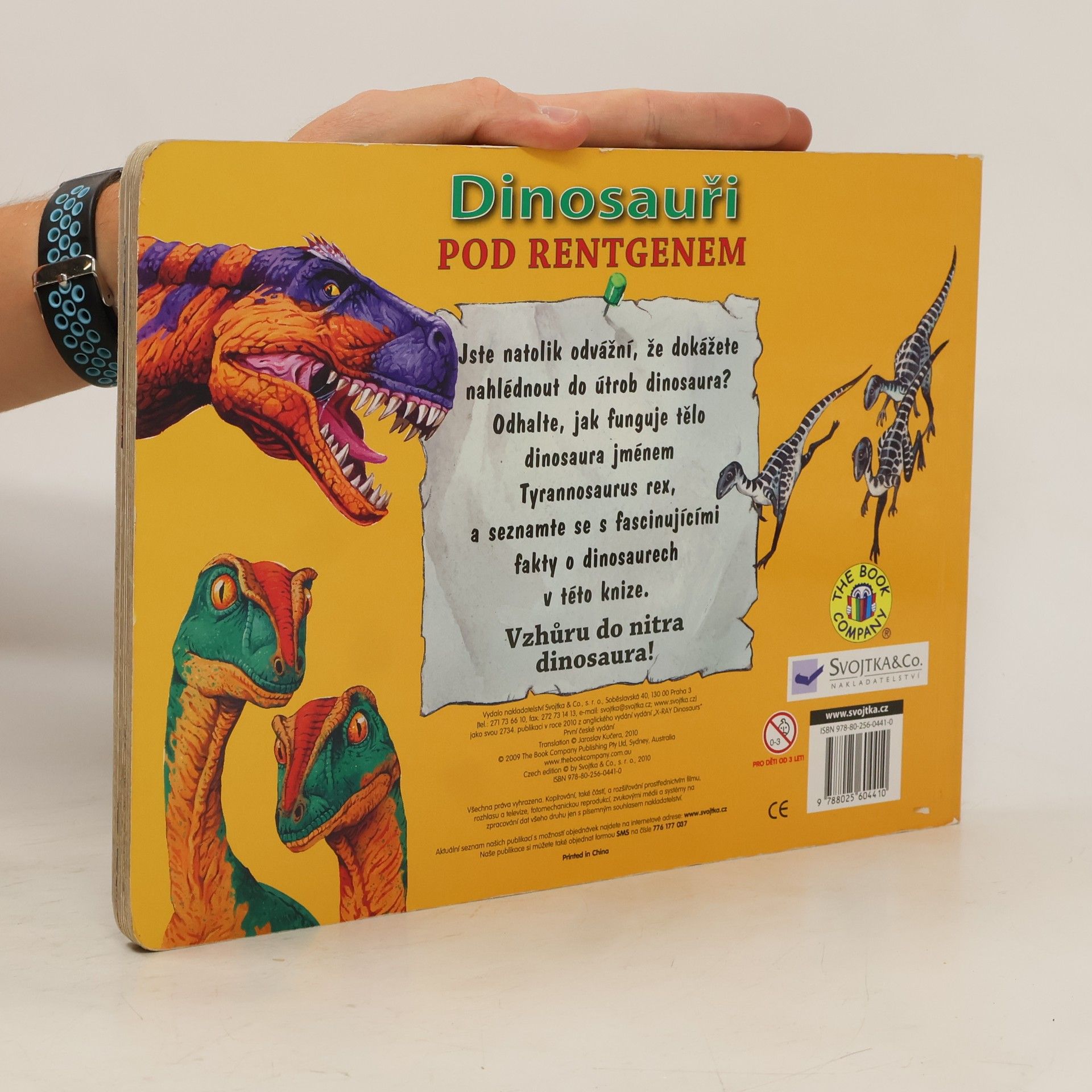 Jste natolik odvážní, že dokážete nahlédnout do útrob dinosaura? Odhalte, jak funguje tělo dinosaura jménem Tyrannosaurus rex, a seznamte se s fascinujícími fakty o dinosaurech v této knize, obsahující i jejich „rentgenové“ snímky. Vzhůru do nitra dinosaura! Knížka pro mladší děti o stavbě a fungování těla dinosaurů, jejich druzích i zajímavostech z jejich života. Leporelo doplněné barevnými průsvitkami jednotlivých soustav (kostra, svaly, trávicí soustava, srdce a cévy). Stručné informace o dinosaurech doprovází kromě průsvitek spousta barevných ilustrací, které mají dětem názorně přiblížit některé skutečnosti i zajímavosti