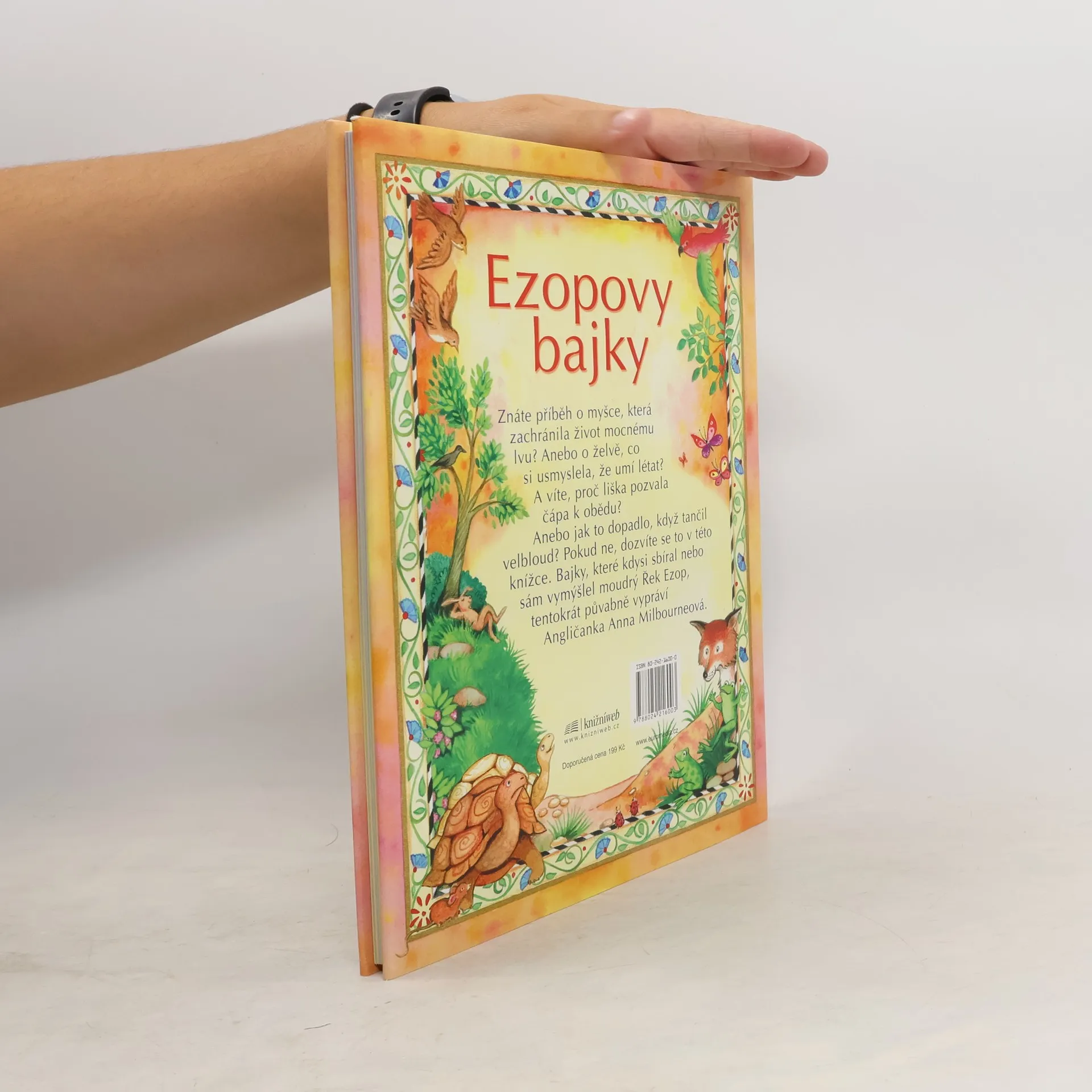 EZOPOVY BAJKY Nejslavnější autor bajek Ezop žil v Řecku před více než dvěma tisíci lety. K příběhům, v nichž zvířata či věci jednají a myslí jako lidé, se v průběhu staletí obrátilo mnoho autorů. K nejznámějším patří Francouz La Fontaine, z našich spisovatelů Karel Čapek. V knížce, kterou jste právě otevřeli, vypráví Ezopovy bajky anglická spisovatelka Anna Milbourneová. Umí to svižně a s humorem; některé příběhy dokonce zasadila do dnešní doby - o to budou čtenáři bližší... Přeložila Melita Denková. Pro děti od 6 let. Váz., 96 stran, 21,5 x 27,5 cm, barevná publikace