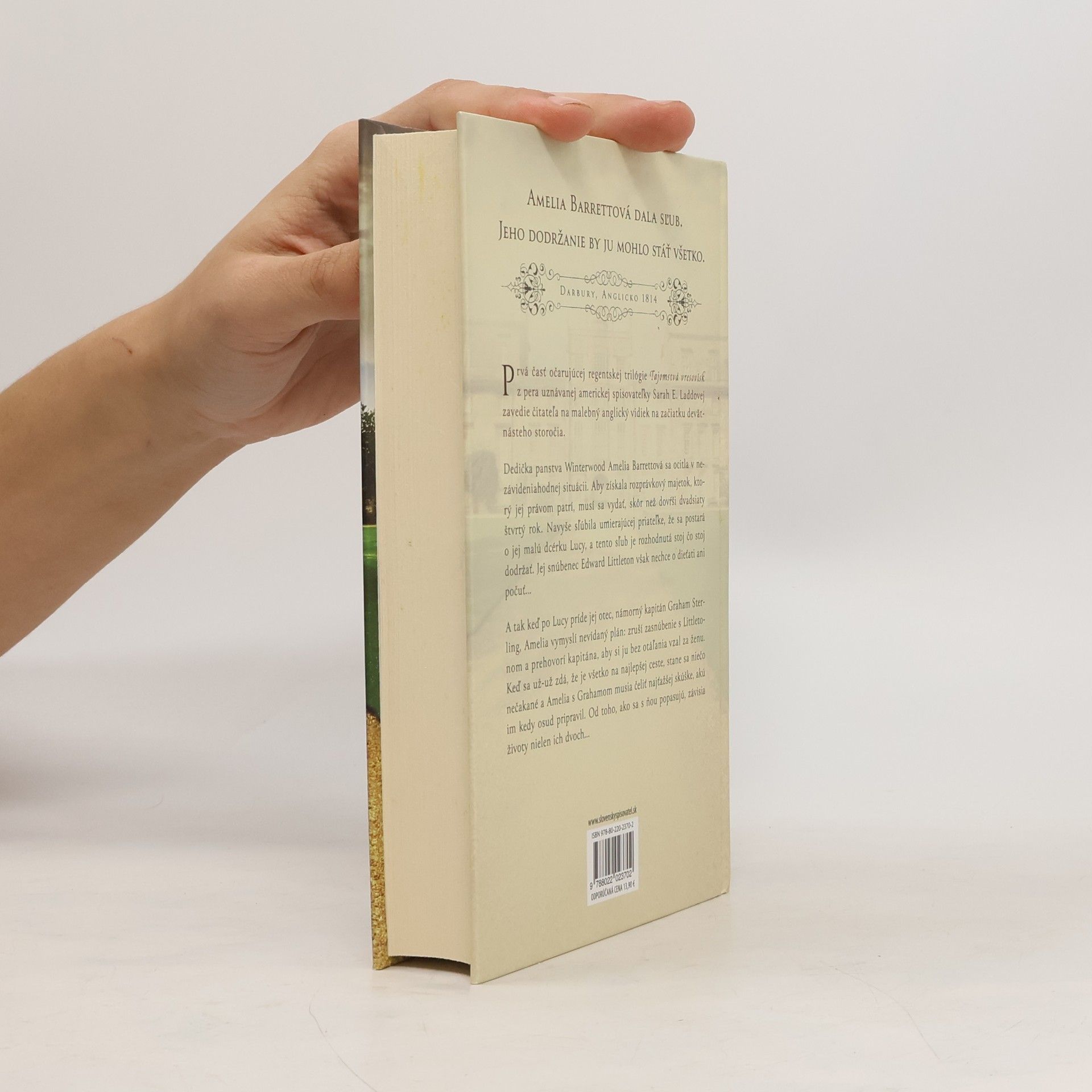 Prvá časť očarujúcej regentskej trilógie Tajomstvá vresovísk z pera uznávanej americkej spisovateľky Sarah E. Laddovej zavedie čitateľa na malebný anglický vidiek na začiatku devätnásteho storočia. Dedička panstva Winterwood Amelia Barrettová sa ocitla v nezávideniahodnej situácii. Aby získala rozprávkový majetok, ktorý jej právom patrí, musí sa vydať, skôr než dovŕši dvadsiaty štvrtý rok. Navyše sľúbila umierajúcej priateľke, že sa postará o jej malú dcérku Lucy, a tento sľub je rozhodnutá stoj čo stoj dodržať. Jej snúbenec Edward Littleton však nechce o dieťati ani počuť... A tak keď po Lucy príde jej otec, námorný kapitán Graham Sterling, Amelia vymyslí nevídaný plán: zruší zasnúbenie s Littletonom a prehovorí kapitána, aby si ju bez otáľania vzal za ženu. Keď sa už-už zdá, že je všetko na najlepšej ceste, stane sa niečo nečakané a Amelia s Grahamom musia čeliť najťažšej skúške, akú im kedy osud pripravil. Od toho, ako sa s ňou popasujú, závisia životy nielen ich dvoch...