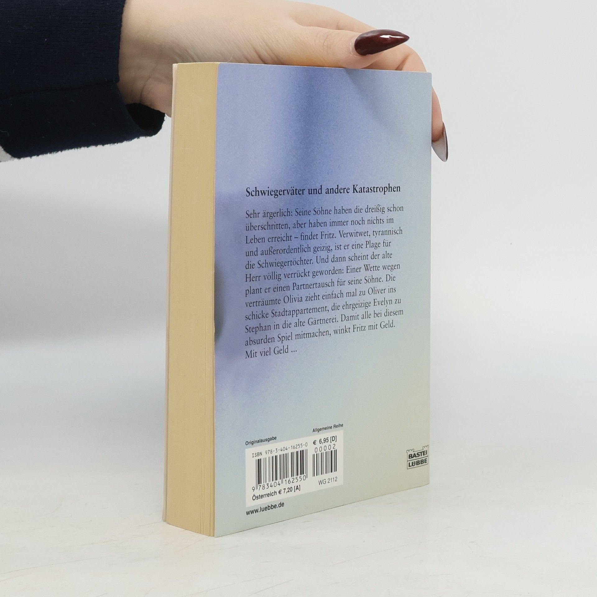 Sehr ärgerlich: Seine Söhne haben die dreißig schon überschritten, aber immer noch ist kein Enkelkind in Sicht. Fritz, verwitwet, tyrannisch und außerordentlich geizig, ist eine Plage für die Schwiegertöchter. Und dann scheint der alte Herr völlig verrückt geworden: Damit die Söhne endlich begreifen, was sie an ihren Frauen haben und wie gut sie zueinander passen, sollen sie ein halbes Jahr die Partner tauschen. Die verträumte Olivia zieht einfach mal zu Bastian ins schicke Stadtappartment, die ehrgeizige Conny zu Stephan in die alte Gärtnerei. – Damit alle bei diesem absurden Spiel mitmachen, winkt Fritz mit Geld. Mit viel Geld ...