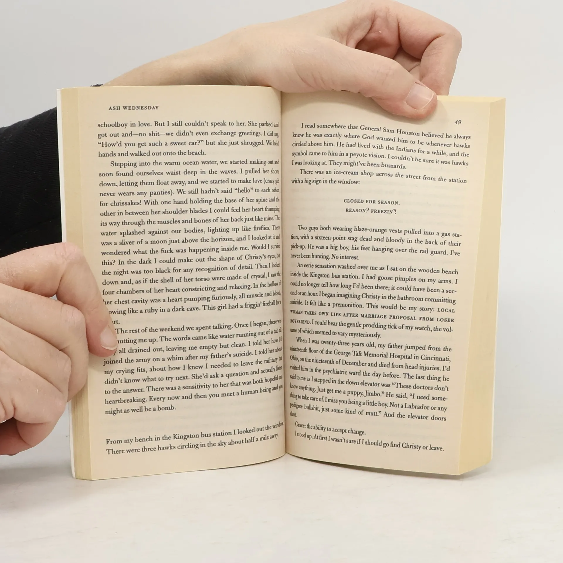 Jimmy is AWOL from the army, but—with characteristic fierceness and terror—he’s about to embark on the biggest commitment of his life. Christy is pregnant with Jimmy’s child, and she’s determined to head home, with or without Jimmy, to face up to her past and prepare for the future. Somehow, barreling across America from Albany to New Orleans to Ohio and Texas in a souped-up Chevy Nova, Christy and Jimmy are transformed from passionate but conflicted lovers into a young family on a magnificent journey. Ash Wednesday is a novel of blazing emotion and remarkable grace, a tale that captures the intensity—the excitement, fear, and joy—of being on the threshold of the mysterious country of marriage and parenthood. Powerful, assured, large of heart, and punctuated by moments of tremendous humor, it represents, for Hawke the novelist, a major leap forward.