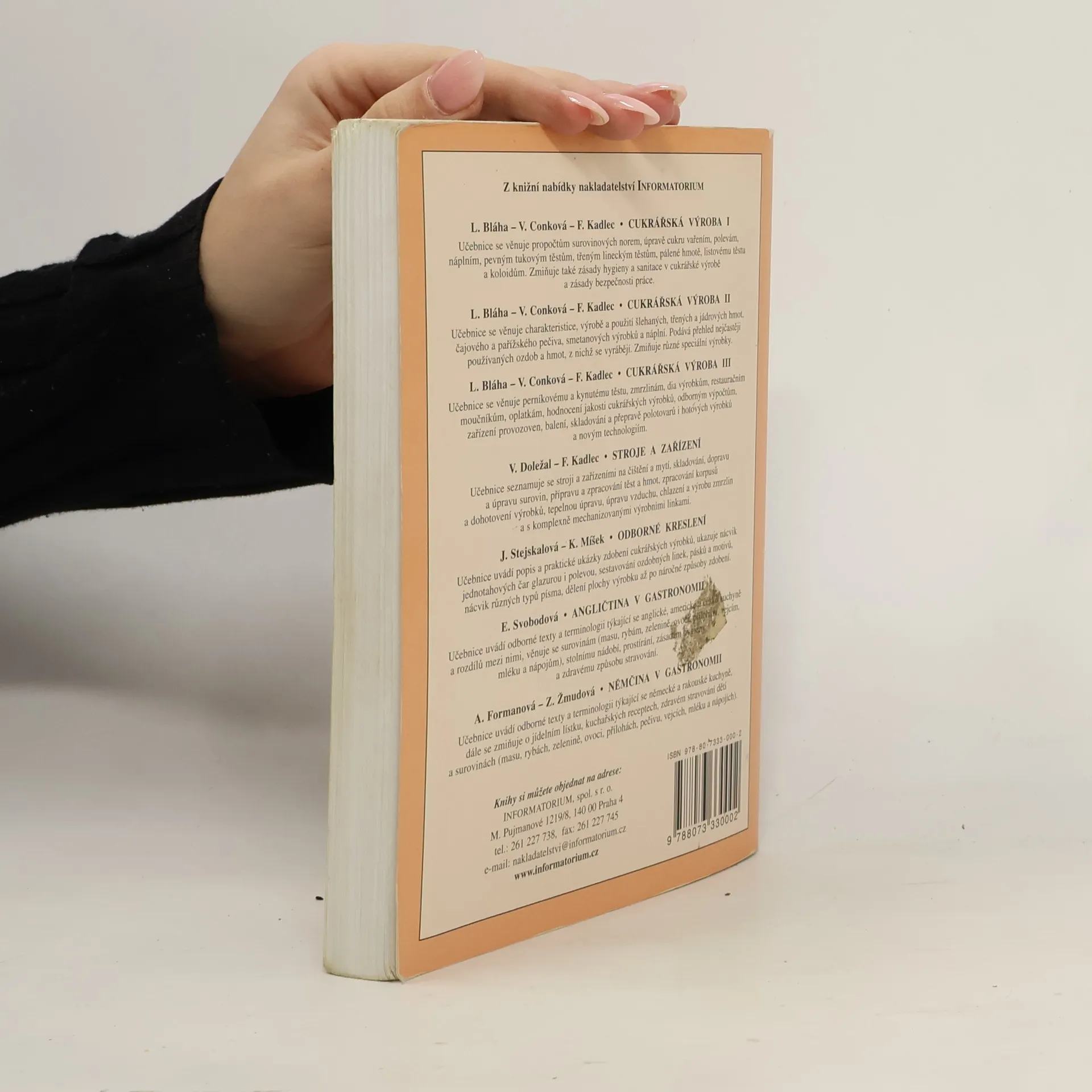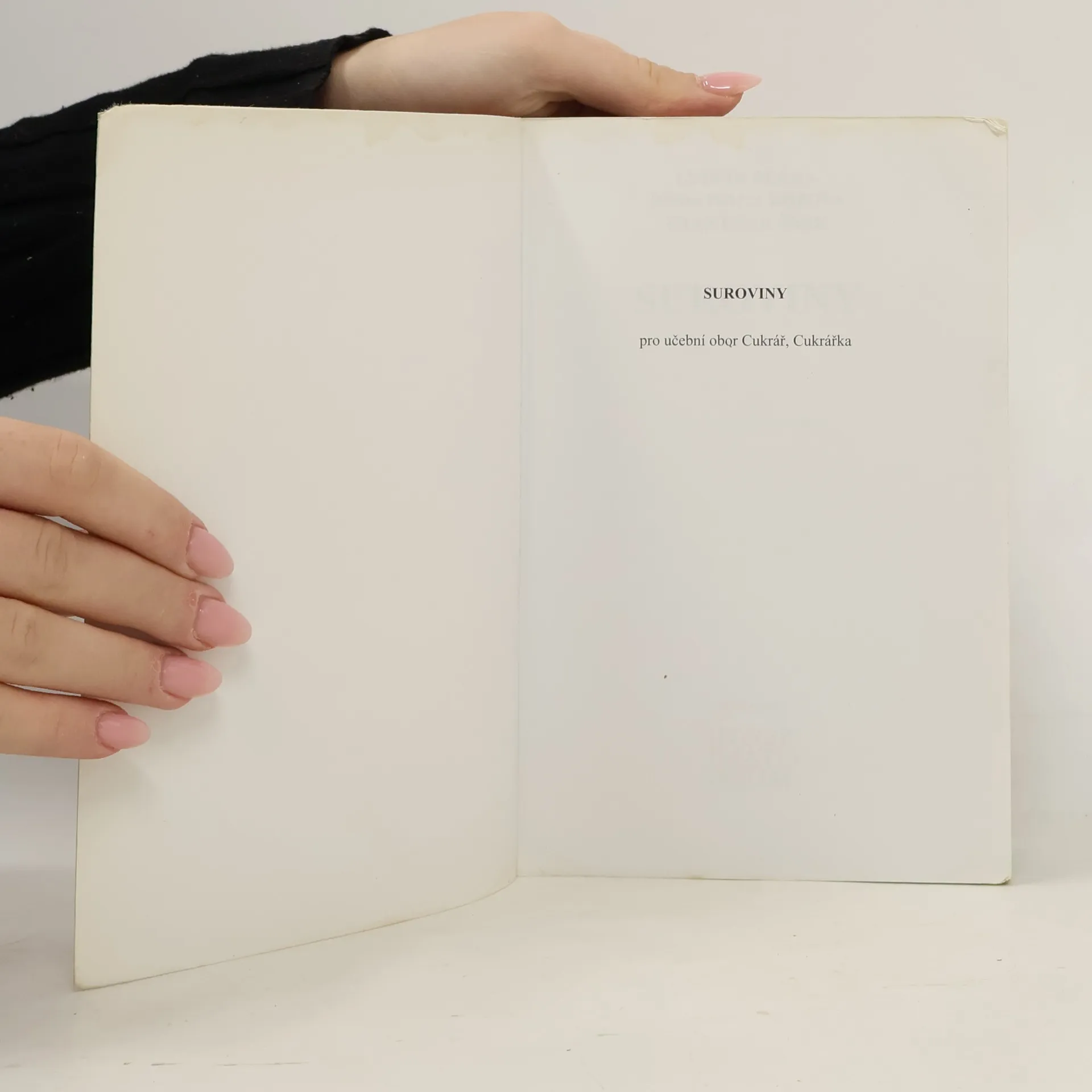 Učebnice popisuje suroviny pro výrobu cukrářských výrobků. Pojednává o výživě, složení a vlastnostech potravin a hodnocení jejich jakosti.Uvádí nejen základní suroviny, ale i nové druhy surovin, kypřících prostředků a potravinářských barviv. Je určena žákům 1. až 3. ročníků středních škol oboru vzdělání Cukrář, Cukrářka (čtvrté aktualizované vydání).