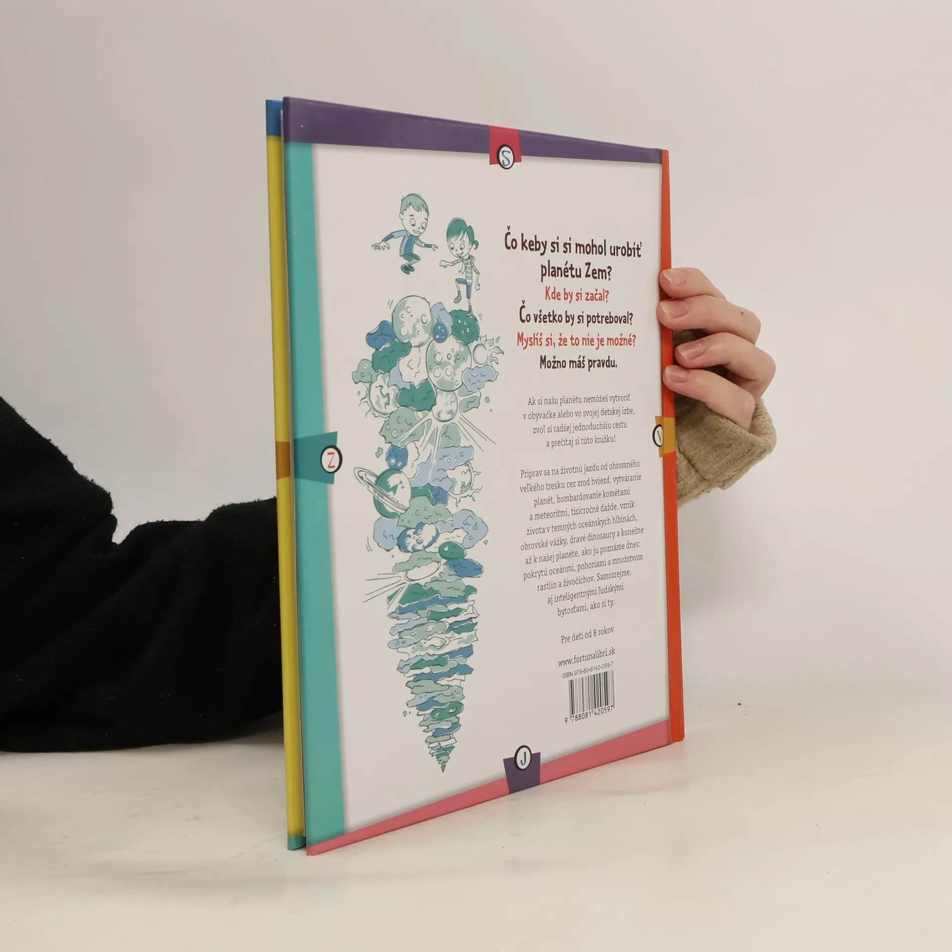 Čo keby si si mohol urobiť’ planétu Zem? Kde by si začal? Čo všetko by si potreboval? Myslíš si, že to nie je možné? Možno máš pravdu. Ak si našu planétu nemôžeš vytvoriť v obývačke alebo vo svojej detskej izbe, zvoľ si radšej jednoduchšiu cestu a prečítaj si túto knižku! Priprav sa na životnú jazdu od ohromného veľkého tresku cez zrod hviezd, vytvára-nie planét, bombardovanie kométami a meteoritmi, tisícročné dažde, vznik života v temných oceánskych hlbinách, obrovské vážky, dravé dinosaury a konečne až k našej planéte, ako ju poznáme dnes: pokrytú oceánmi, pohoriami a množstvom rastlín a živočíchov. Samozrejme, aj inteligentnými ľudskými bytosťami, ako si ty.