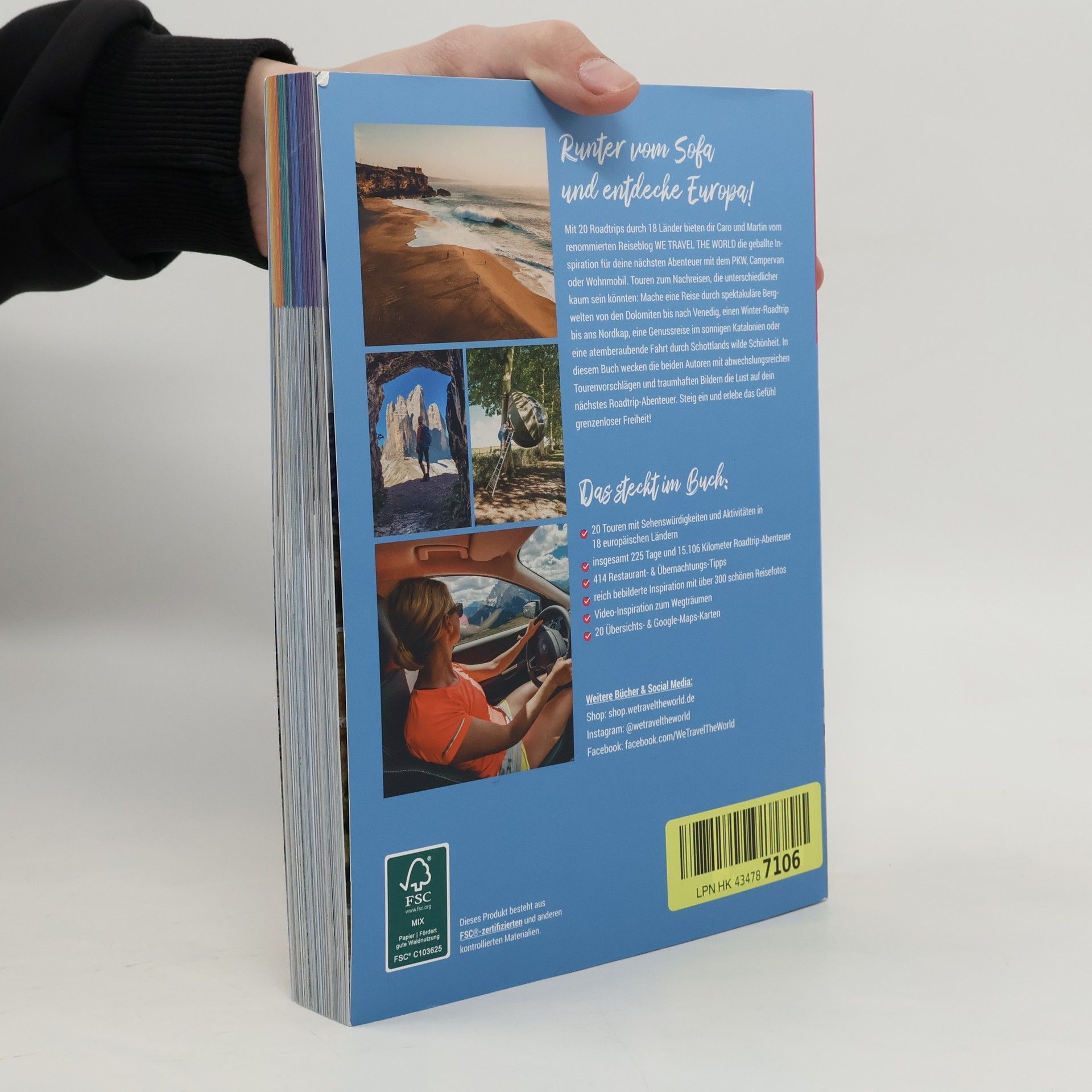 Entdecke Europa! Mit 20 Roadtrips durch 18 Länder bieten dir Caro und Martin vom renommierten Reiseblog WE TRAVEL THE WORLD die geballte Inspiration für deine nächsten Abenteuer mit dem PKW, Campervan oder Wohnmobil. Touren zum Nachreisen, die unterschiedlicher kaum sein könnten: Mache eine Reise durch spektakuläre Bergwelten von den Dolomiten bis nach Venedig, einen Winter-Roadtrip bis ans Nordkap, eine Genussreise im sonnigen Katalonien oder eine atemberaubende Fahrt durch Schottlands wilde Schönheit. In diesem Buch wecken die beiden Autoren mit abwechslungsreichen Tourenvorschlägen und traumhaften Bildern die Lust auf dein nächstes Roadtrip-Abenteuer. Steig ein und erlebe das Gefühl grenzenloser Freiheit! Das steckt im Reiseführer Europa Roadtrips: 20 Touren mit Sehenswürdigkeiten und Aktivitäten in 18 europäischen Ländern insgesamt 225 Tage und 15.106 Kilometer Roadtrip-Abenteuer 414 Restaurant- und Übernachtungs-Tipps reich bebilderte Inspiration mit über 300 schönen Reisefotos Video-Inspiration zum Wegträumen 20 Übersichts- & Google-Maps-Karten Hol dir jetzt geballte Inspiration für dein nächstes Roadtrip-Abenteuer! Worauf wartest du noch? Jetzt zugreifen und Europa entdecken!