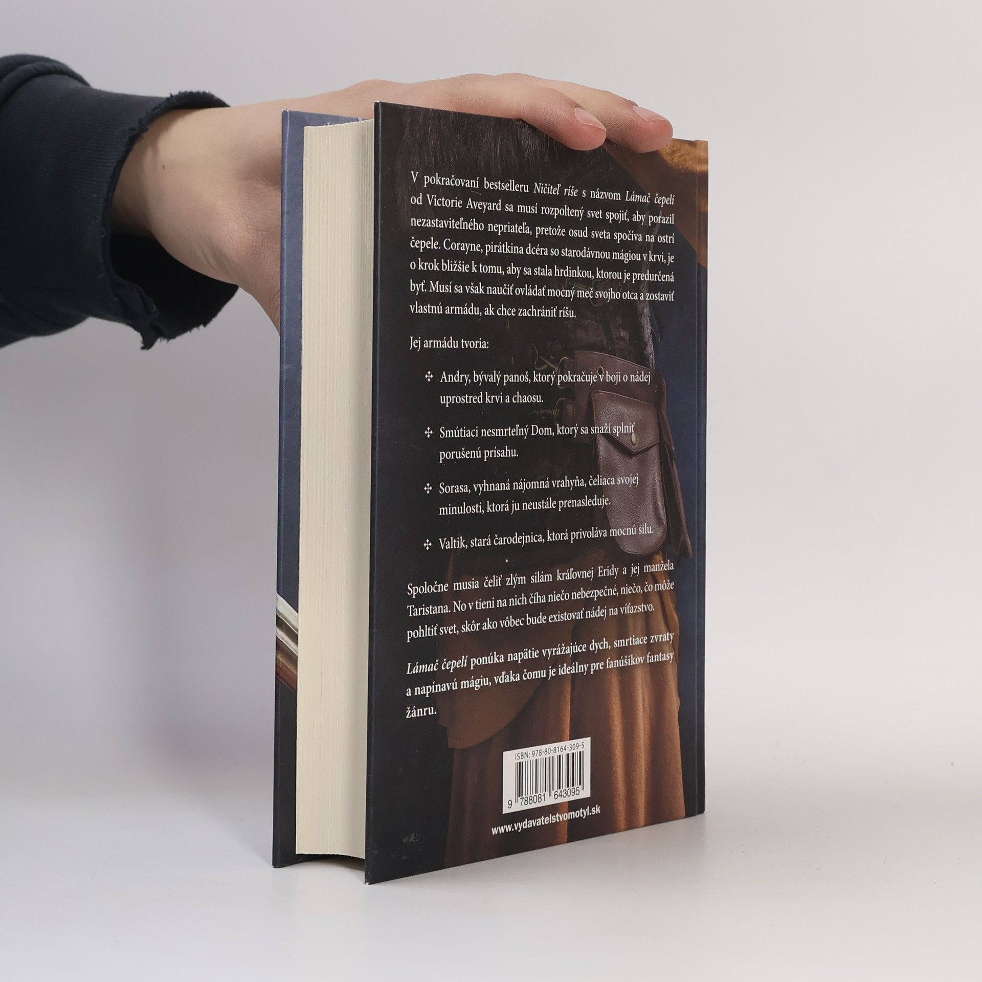 V pokračovaní bestselleru Ničiteľ ríše s názvom Lámač čepelí od Victorie Aveyard musí rozpoltený svet spojiť svoje sily, aby porazil nezastaviteľného nepriateľa, pretože osud sveta spočíva na ostrí čepele. Corayne, pirátkina dcéra so starodávnou mágiou v krvi, je o krok bližšie k tomu, aby sa stala hrdinkou, ktorou je predurčená byť. Musí sa však naučiť ovládať mocný meč svojho otca a zostaviť vlastnú armádu, ak chce zachrániť ríšu.Jej armádu tvoria:Andry, bývalý panoš, ktorý pokračuje v boji o nádej uprostred krvi a chaosu.Smútiaci nesmrteľný Dom, ktorý sa snaží splniť porušenú prísahu.Sorasa, vyhnaná nájomná vrahyňa, čeliaca svojej minulosti, ktorá ju neustále prenasleduje.Valtik, stará čarodejnica, ktorá privoláva mocnú silu.Spoločne musia čeliť zlým silám kráľovnej Eridy a jej manžela Taristana. No v tieni na nich číha niečo nebezpečné, niečo, čo môže pohltiť svet, skôr ako vôbec bude existovať nádej na víťazstvo.Lámač čepelí ponúka napätie vyrážajúce dych, smrtiace zvraty a napínavú mágiu, vďaka čomu je ideálny pre fanúšikov fantasy žánru.