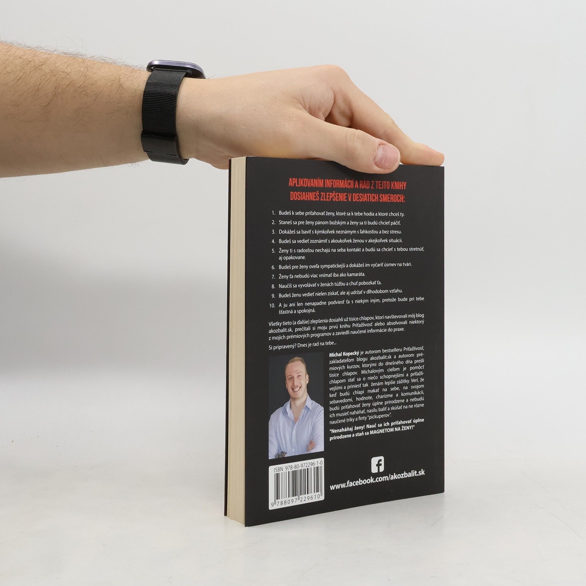 Po prvotine s názvom Príťažlivosť, ktorá sa stala bestsellerom, prichádza Michal Kopecký s druhou knihou, od ktorej sa očakáva, že predčí svojho predchodcu. A podľa tých, ktorí ju už čítali, sa mu to aj podarilo. Michal pomáha chlapom, aby boli schopnejšími, príťažlivejší a prinášali tak ženám lepšie zážitky. Verí, že keď budú chlapi makať na sebe, na svojom sebavedomí, hodnote, charizme a komunikácii, budú priťahovať ženy úplne prirodzene a nebudú ich musieť naháňať, nasilu baliť a skúšať na ne rôzne naučené triky a finty „baličov”. Teraz prichádza s novou knihou Ako ju získať, ktorá je praktickým návodom ako stretnúť, spoznať a získať ženu svojich snov. Aby nebol len ďalší teoretik, celé to postavil na svojom vlastnom príbehu, ako sa mu (aj napriek nepriazni) podarilo získať jeho manželku.