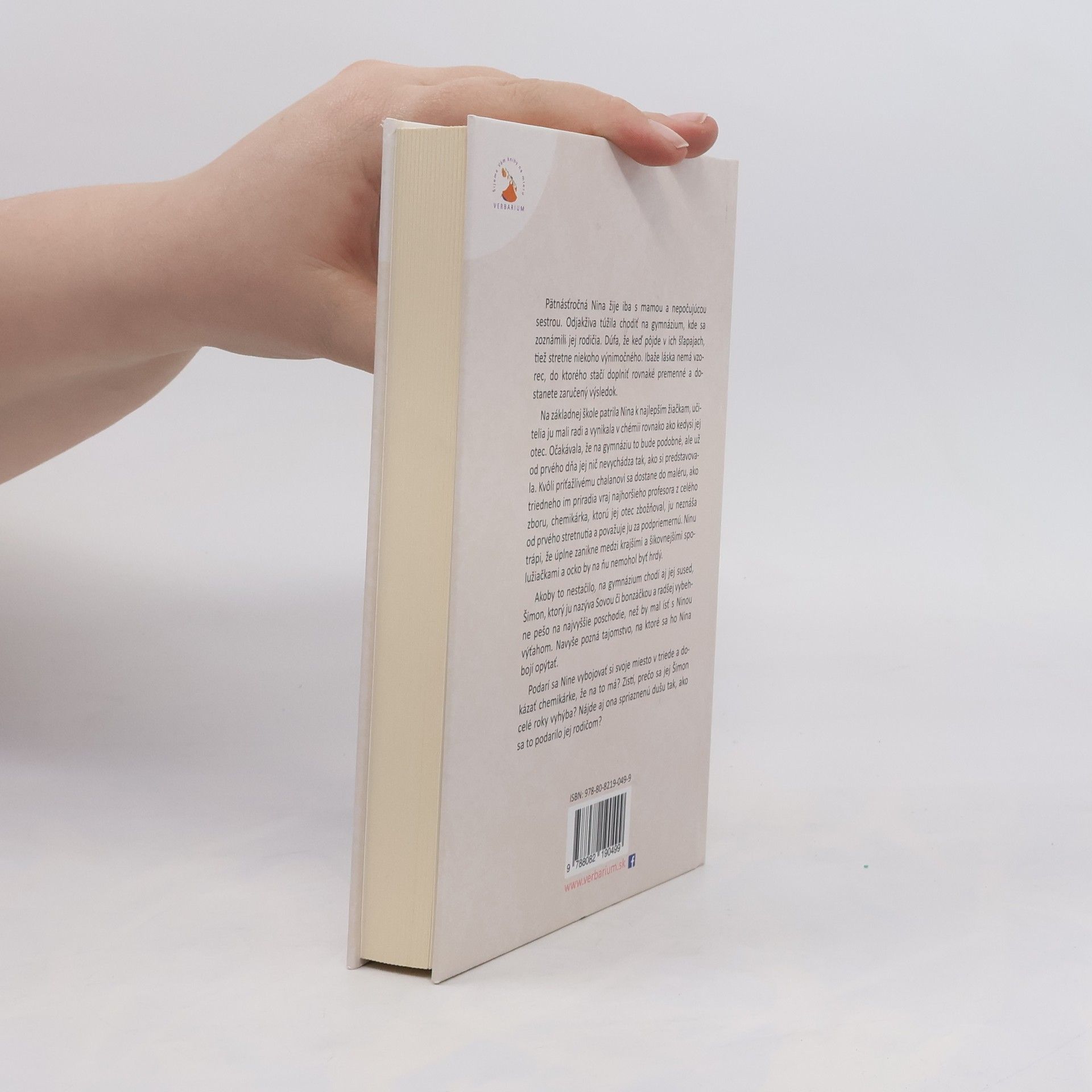 Pätnásťročná Nina žije iba s mamou a nepočujúcou sestrou. Odjakživa túžila chodiť na gymnázium, kde sa zoznámili jej rodičia. Dúfa, že keď pôjde v ich šľapajach, tiež stretne niekoho výnimočného. Ibaže láska nemá vzorec, do ktorého stačí doplniť rovnaké premenné a dostanete zaručený výsledok. Na základnej škole patrila Nina k najlepším žiačkam, učitelia ju mali radi a vynikala v chémii rovnako, ako kedysi jej otec. Očakávala, že na gymnáziu to bude rovnaké, ale už od prvého dňa jej nič nevychádza tak, ako si predstavovala. Kvôli príťažlivému chalanovi sa dostane do maléru, ako triedneho im priradia vraj najhoršieho profesora z celého zboru a chemikárka, ktorú jej otec zbožňoval, ju neznáša od prvého stretnutia a považuje ju za podpriemernú. Ninu trápi, že úplne zanikne medzi krajšími a šikovnejšími spolužiačkami a ocko by na ňu nemal byť za čo pyšný. Akoby to nestačilo, na gymnázium chodí aj jej sused, Šimon, ktorý ju nazýva Sovou či bonzáčkou a radšej vybehne pešo na najvyššie poschodie, než by mal ísť s Ninou výťahom. Navyše pozná tajomstvo, na ktoré sa ho Nina bojí opýtať. Podarí sa Nine vybojovať si svoje miesto v triede a dokázať chemikárke, že na to má? Zistí, prečo sa jej Šimon celé roky vyhýba? Nájde aj ona spriaznenú dušu tak, ako sa to podarilo jej rodičom?