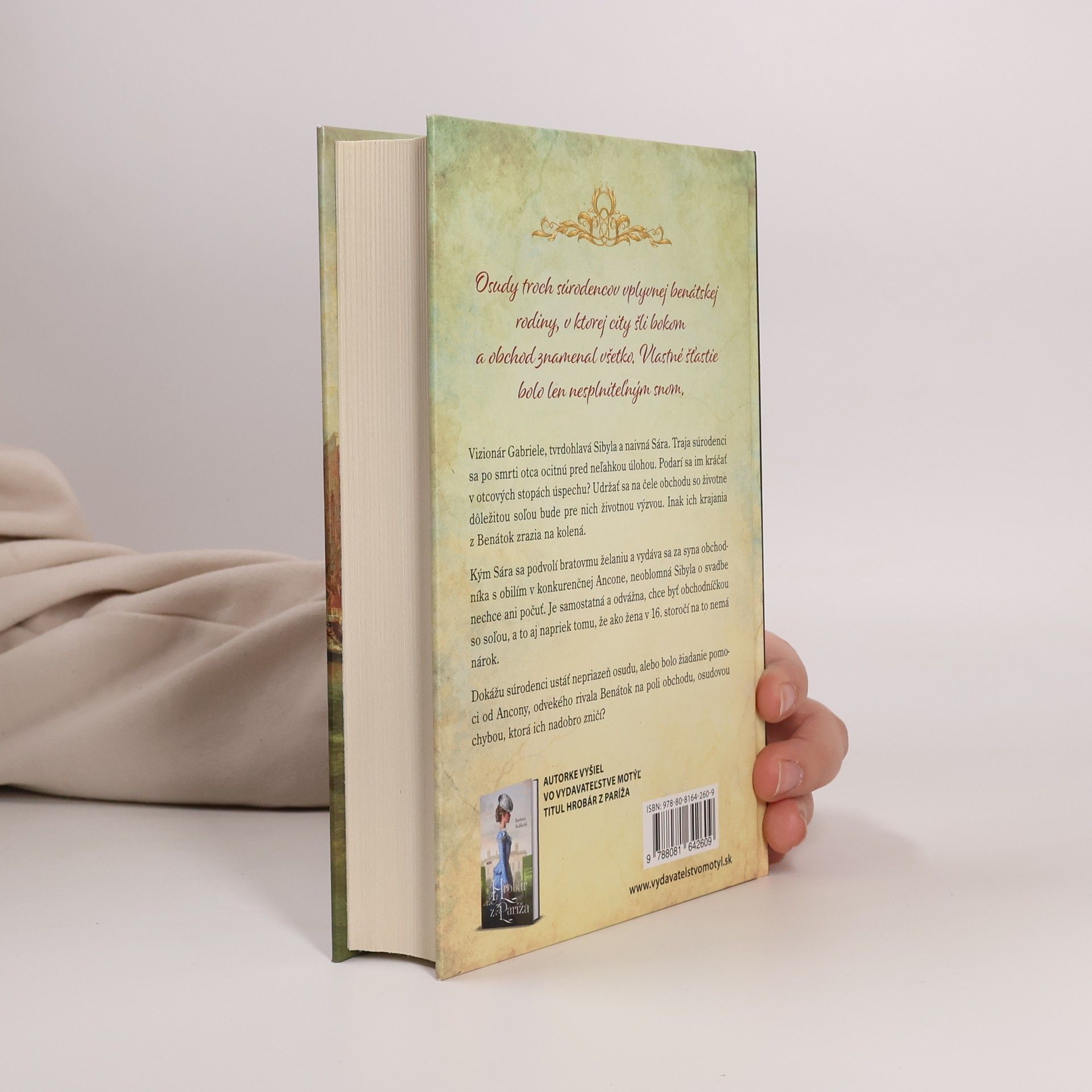 Osudy troch súrodencov vplyvnej benátskej rodiny, v ktorej city šli bokom a obchod znamenal všetko. Vlastné šťastie bolo len nesplniteľným snom. Vizionár Gabriele, tvrdohlavá Sibyla a naivná Sára. Traja súrodenci sa po smrti otca ocitnú pred neľahkou úlohou. Podarí sa im kráčať v otcových stopách úspechu? Udržať sa na čele obchodu so životne dôležitou soľou bude pre nich životnou výzvou. Inak ich krajania z Benátok zrazia na kolená. Kým Sára sa podvolí bratovmu želaniu a vydáva sa za syna obchodníka s obilím v konkurenčnej Ancone, neoblomná Sibyla o svadbe nechce ani počuť. Samostatná a odvážna chce byť obchodníčkou so soľou, aj napriek tomu, že ako žena v 16. storočí na to nemá nárok. Dokážu súrodenci ustáť nepriazeň osudu alebo bolo žiadanie pomoci od Ancony, odvekého rivala Benátok na poli obchodu, osudovou chybou, ktorá ich nadobro zničí?
