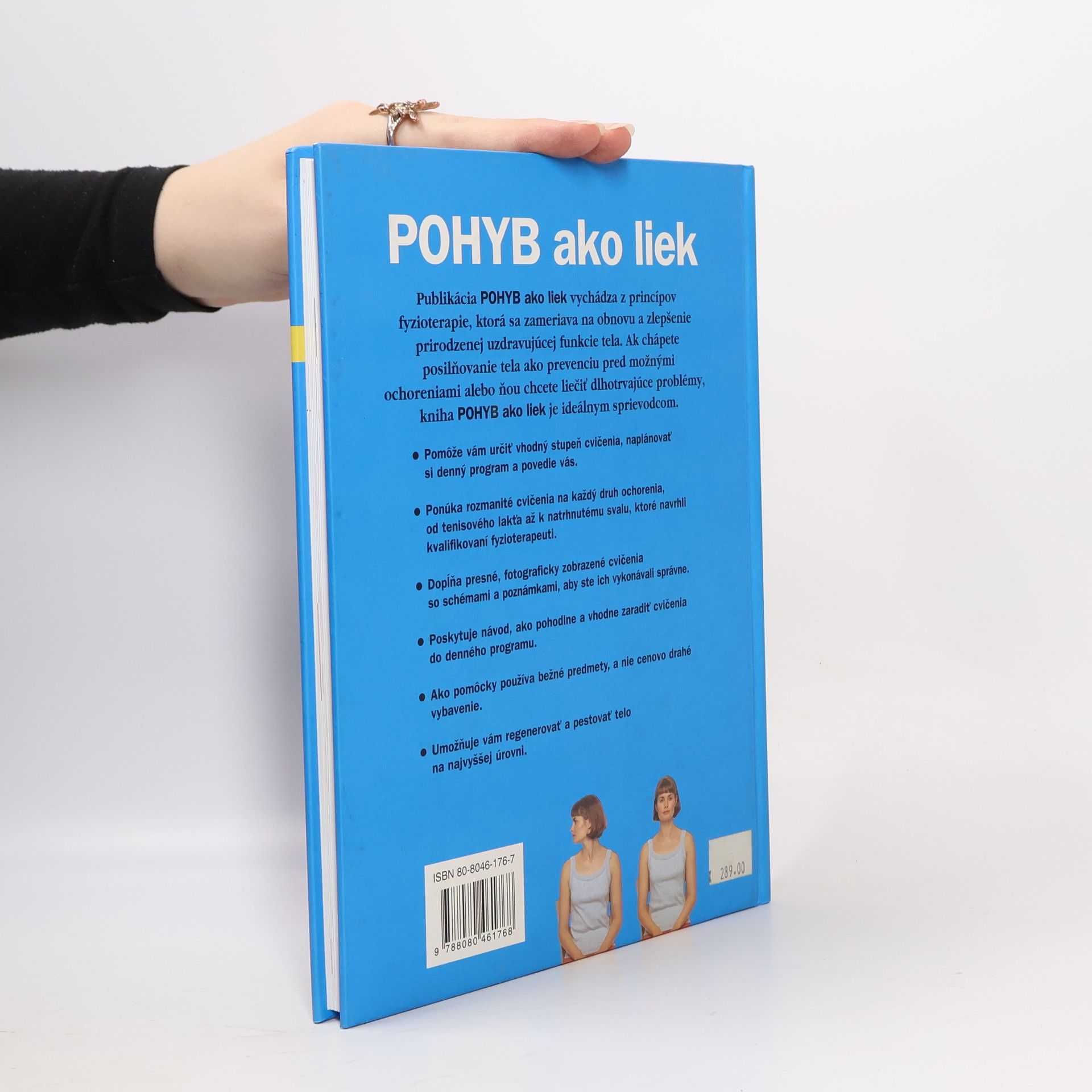 ek príručka na posilnenie pružnosti tela, prevenciu proti úrazom i na zvládnutie poúrazových stavov. Publikácia pohyb ako liek vychádza z princípov fyzioterapie, ktorá sa zameriava na obnovu a zlepšenie prirodzenej uzdravujúcej funkcie tela. Ak chápete posilnovanie tela ako prevenciu pred moznými ochoreniami alebo nou chcete liecit dlhotrvajúce problémy, kniha Pohyb ako liek je ideálnym sprievodcom. - pomôze vám urcit vhodný stupen cvicenia, naplánovat si denný program a povedie vás - ponúka rozmanité cvicenia na kazdý druh ochorenia, od tenisového lakta az k natrhnutému svalu, ktoré navrhli kvalifikovaní fyzioterapeuti - doplna presné, fotograficky zobrazené cvicenia so schémami a poznámkami, aby ste ich vykonávali správne - poskytuje návod, ako pohodlne a vhodne zaradit cvicenia do denného programu - ako pomôcky pouzíva bezne predmety, a nie cenovo drahé vybavenie - umoznuje vám regenerovat a pestovat telo na najvyššej úrovni.