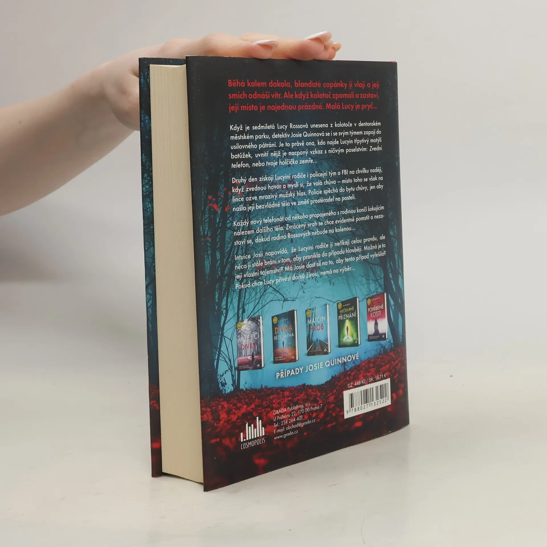 Když je sedmiletá Lucy Rossová unesena z kolotoče v dentonském městském parku, detektiv Josie Quinnová se i se svým týmem zapojí do usilovného pátrání. Je to právě ona, kdo najde Lucyin třpytivý motýlí batůžek, uvnitř nějž je nacpaný vzkaz s ničivým poselstvím: Zvedni telefon, nebo tvoje holčička zemře... Druhý den získají Lucyini rodiče i policejní tým a FBI na chvilku naději, když zvednou hovor a myslí si, že volá chůva – místo toho se však na lince ozve mrazivý mužský hlas. Policie spěchá do bytu chůvy, jen aby našla její bezvládné tělo ve změti prostěradel na posteli. Každý nový telefonát od někoho propojeného s rodinou končí šokujícím nálezem dalšího těla. Zvrácený vrah se chce evidentně pomstít a nezastaví se, dokud rodina Rossových nebude na kolenou... Intuice Josii napovídá, že Lucyini rodiče jí neříkají celou pravdu, ale něco jí stále brání v tom, aby pronikla do případu hlouběji. Možná je to její vlastní tajemství? Má Josie dost sil na to, aby tento případ vyřešila? Pokud chce Lucy přivést domů živou, nemá na výběr...