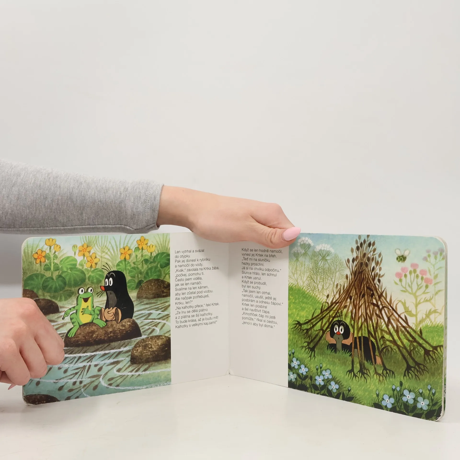 Klasické leporelo pro předškolní děti. Krtek a jeho kamarádi - zajíček, medvěd, myška a žabka, prožívají velká dobrodružství v lese, na louce a ve vodě. Krtek si navíc ušije s pomocí dalších zvířátek nádherné kalhotky.