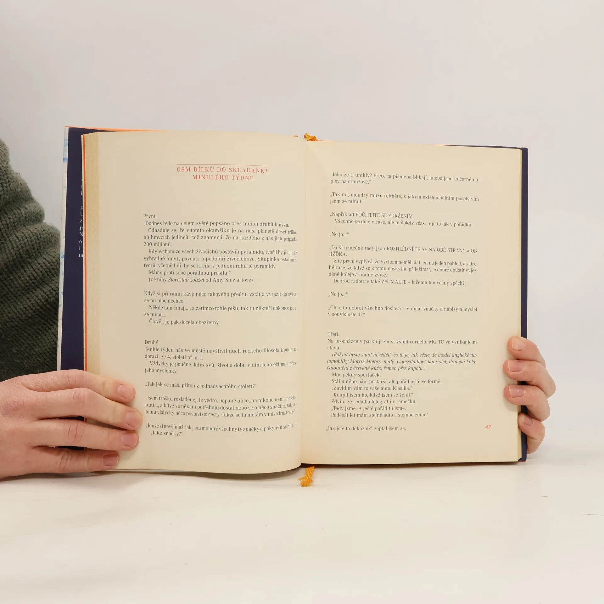 Robert Fulghum tak, jak ho známe a máme rádi. Je čím dál starší, moudřejší, ale smysl pro humor ani v nejmenším neztrácí. Utvrdí vás v tom, že je každý den plný zázraků, které člověk vidí jen, když chodí po světě s otevřenýma očima i srdcem. Navrch se dozvíte spoustu nových věcí o strakách, historii Santa Fe, keramice i tělesných pochodech. A už jste někdy tančili s orangutankou?