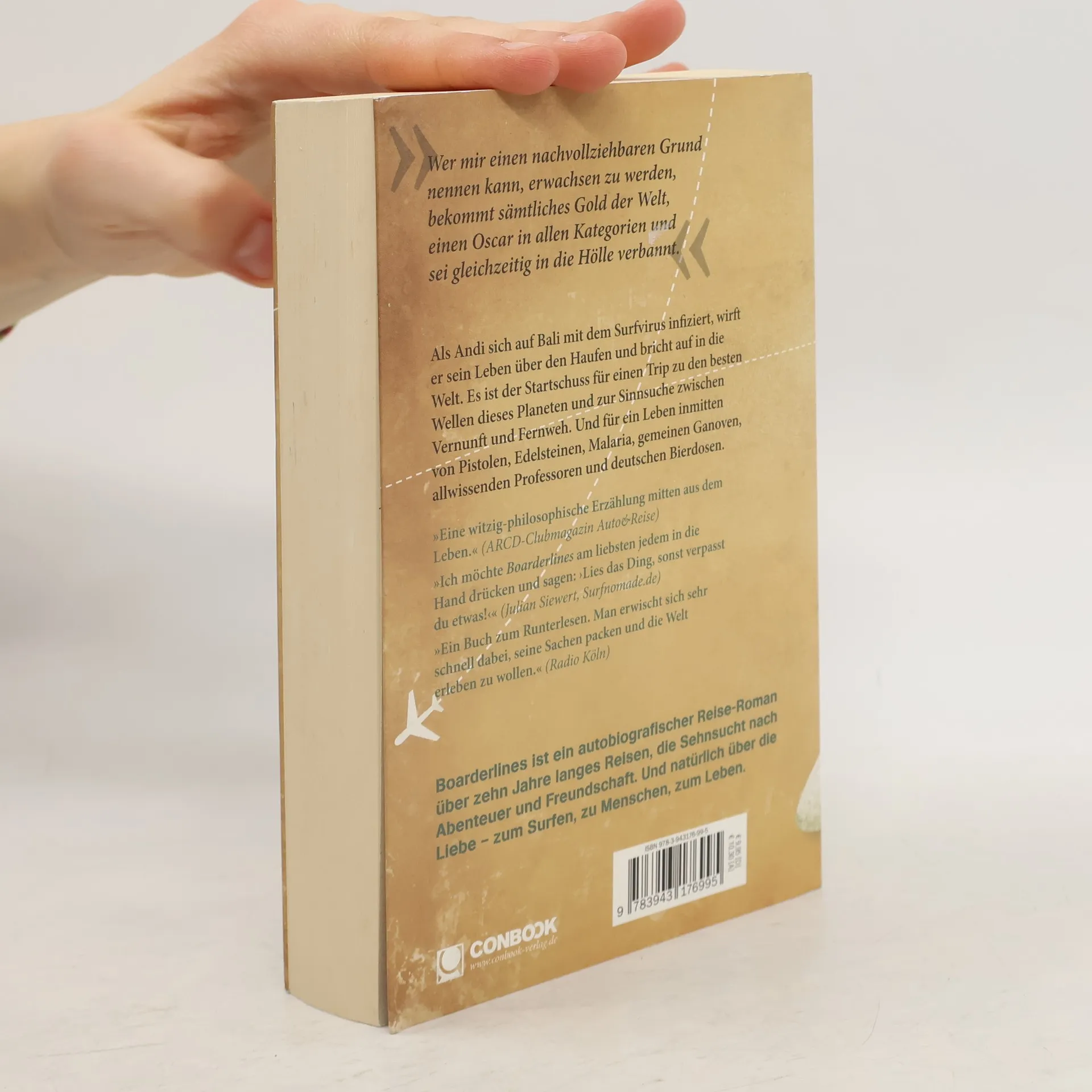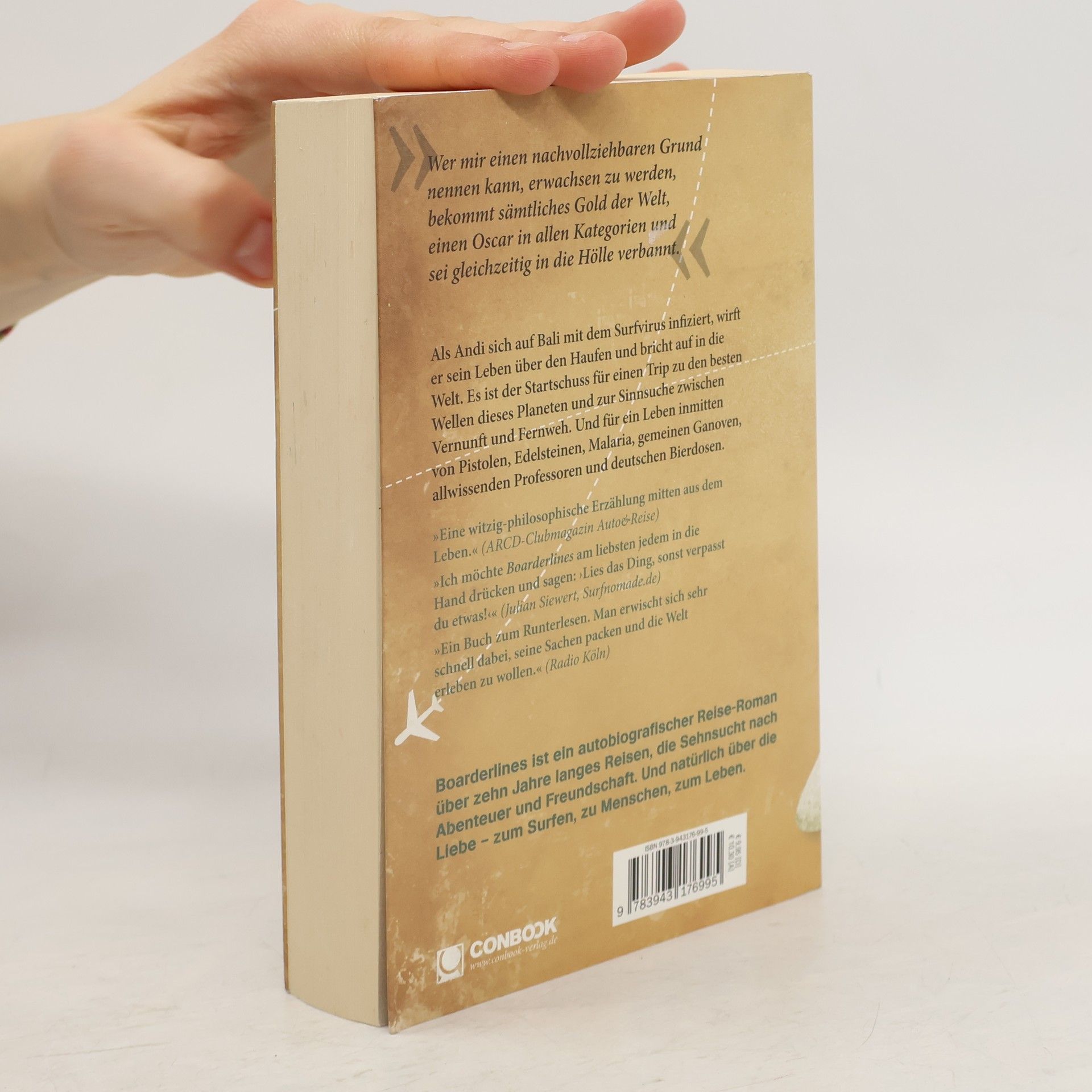 »Wer mir einen nachvollziehbaren Grund nennen kann, erwachsen zu werden, bekommt sämtliches Gold der Welt, einen Oscar in allen Kategorien und sei gleichzeitig in die Hölle verbannt.« Andi ist ein pflichtbewusster VWL-Student, dem eine lukrative Zukunft winkt. Doch dann entscheidet er spontan, sein Konto zu plündern und nach Asien aufzubrechen. Auf Bali wird er mit dem Surfvirus infiziert, und von nun an ist das Wellenreiten seine lebensbestimmende Leidenschaft, die ihn vor eine große Entscheidung stellt: Gibt er dem inneren Feuer Zündstoff oder ebnet er den Weg für die geplante Managerkarriere? Die Suche nach der Antwort dauert zehn Jahre und führt über unfassbare Abenteuer, durch ferne Länder, zeigt Begegnungen mit außergewöhnlichen Menschen, skurrilen Typen und gefährlichen Gangstern. Und sie beschreibt den ständigen Kampf mit sich selbst auf dem Weg zum persönlichen Glück. Boarderlines ist ein autobiografischer Reise-Roman über die schönsten Wellen dieses Planeten, die Sinnsuche und die Sehnsucht nach Abenteuer. Über ein Leben zwischen Pistolen, Edelsteinen, Malaria, einer entlegenen Insel, gemeinen Ganoven, allwissenden Professoren, und deutschen Bierdosen. Über Freundschaft und natürlich über die Liebe – zum Surfen, zu Menschen, zum Leben. Ein Erlebnis für junge Wilde und solche, die es (noch immer) werden wollen.