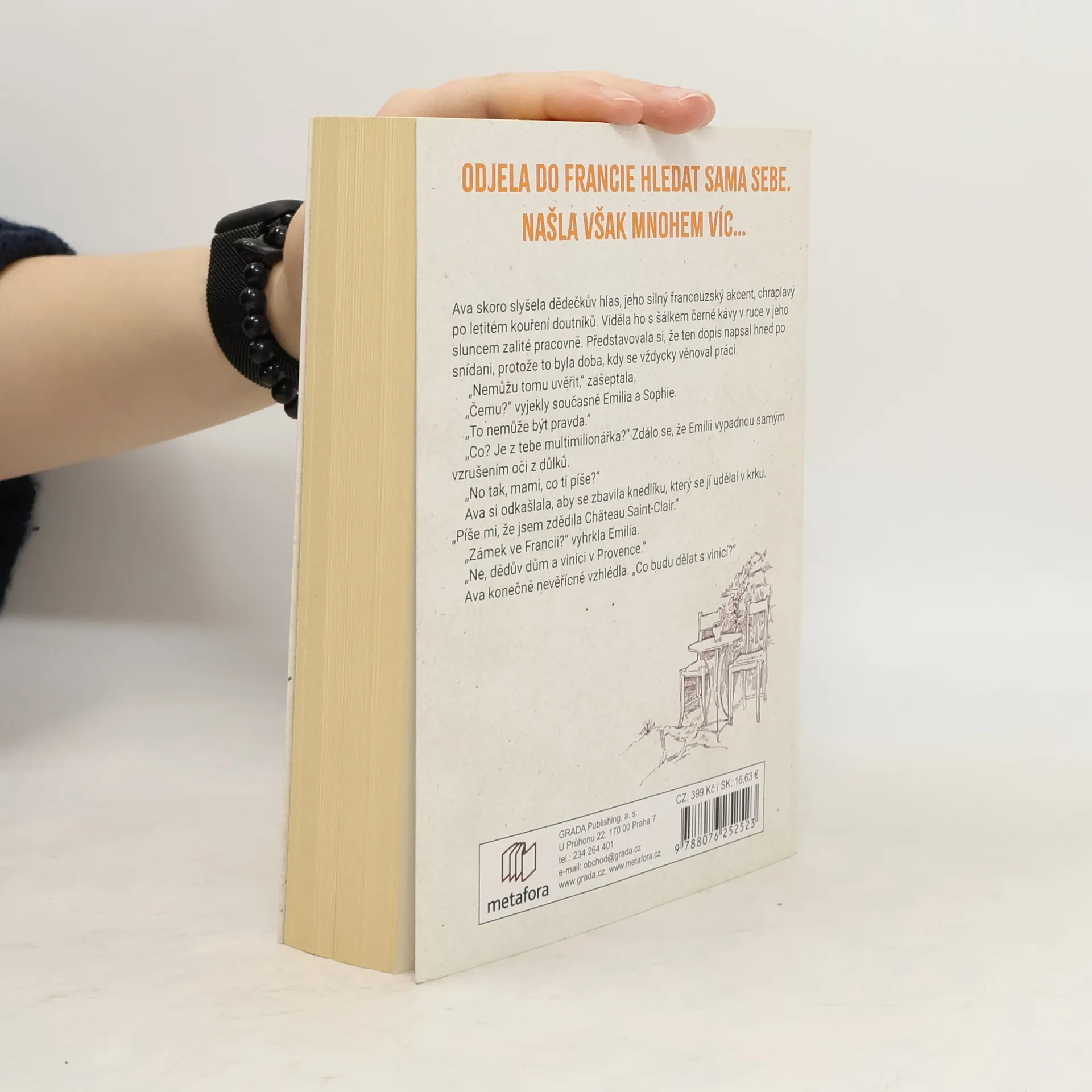 Ava nutně potřebuje změnu. Změnu od práce, která ji nenaplňuje, a od života s horou dluhů, jež jí na krk pověsil její manžel předtím, než se od rodiny odstěhoval. Když k tomu zemře její dědeček, Avě začne situace přerůstat přes hlavu. Z dopisu se navíc dovídá, že zdědila vinici Château Saint-Clair v Provence. Ava neváhá a vydává se do Francie, kde jako malá trávila každé léto. Čerstvá káva a croissanty ke snídani, sklenka rosé ve společnosti pohledného číšníka Jacquesa… Konečně si někde připadá doma. Dokonce natolik, že se jí do jejího anglického domova ani nechce vracet. Opravdu by bylo tak špatné vzdát se krachujícího manželství a pokusit se místo něj zachránit chátrající vinici, kterou si zamilovala už v dětství?