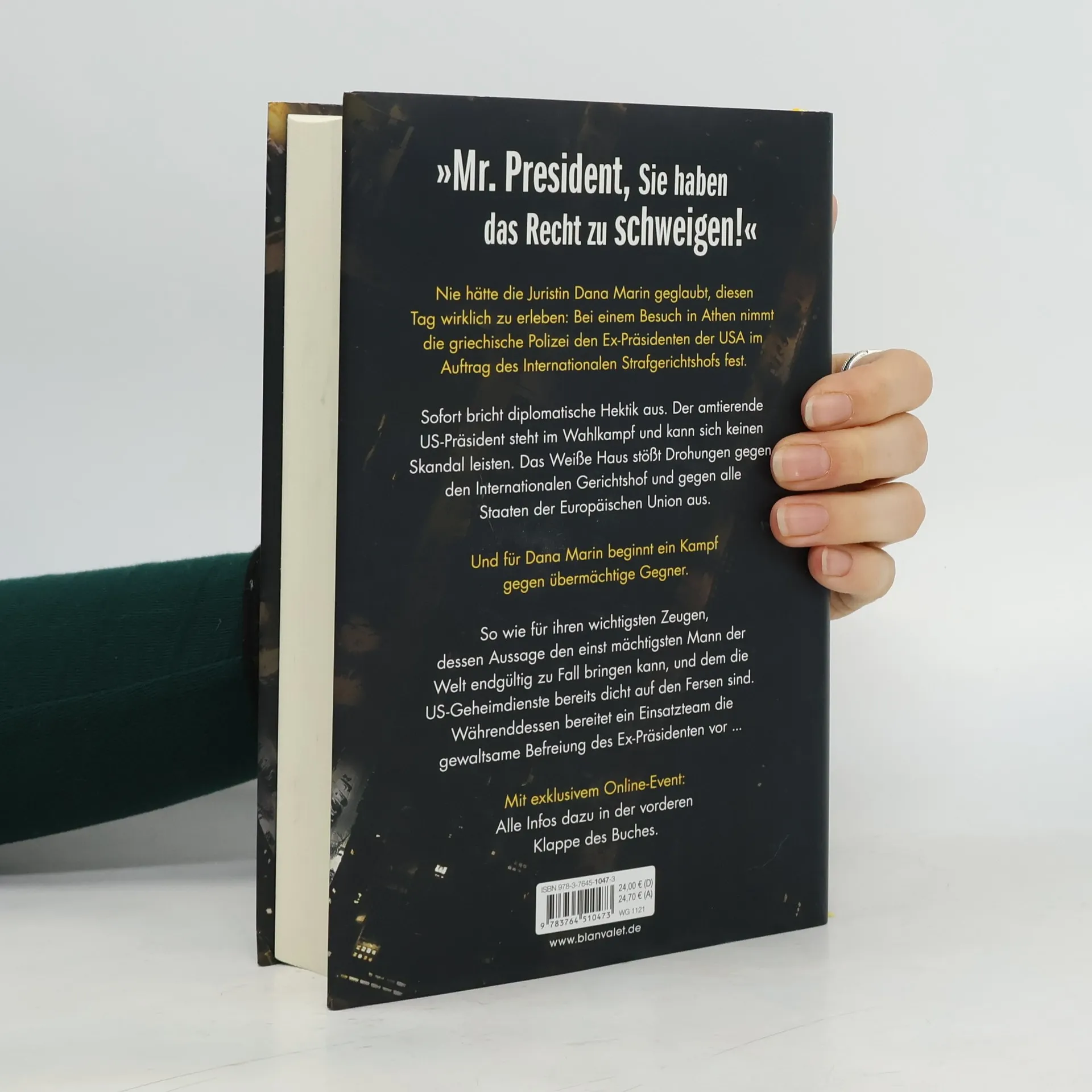 »Mr. President, Sie haben das Recht zu schweigen!« – Wenn Fiktion zur Realität wird – der neue Bestseller von Marc Elsberg! Mit Zugang zum exklusiven Online-Event: Alle Infos dazu im Buch. Nie hätte die Juristin Dana Marin geglaubt, diesen Tag wirklich zu erleben: Bei einem Besuch in Athen nimmt die griechische Polizei den Ex-Präsidenten der USA im Auftrag des Internationalen Strafgerichtshofs fest. Sofort bricht diplomatische Hektik aus. Der amtierende US-Präsident steht im Wahlkampf und kann sich keinen Skandal leisten. Das Weiße Haus stößt Drohungen gegen den Internationalen Gerichtshof und gegen alle Staaten der Europäischen Union aus. Und für Dana Marin beginnt ein Kampf gegen übermächtige Gegner. So wie für ihren wichtigsten Zeugen, dessen Aussage den einst mächtigsten Mann der Welt endgültig zu Fall bringen kann. Die US-Geheimdienste sind dem Whistleblower bereits dicht auf den Fersen. Währenddessen bereitet ein Einsatzteam die gewaltsame Befreiung des Ex-Präsidenten vor, um dessen Überstellung nach Den Haag mit allen Mitteln zu verhindern ... Lesen Sie auch den aktuellen Thriller von Marc Elsberg: °C - Celsius! Ein Klimathriller, der alles auf den Kopf stellt. Außerdem erhältlich: Blackout. Morgen ist es zu spät. Zero. Sie wissen, was du tust. Helix: Sie werden uns ersetzen. Gier. Wie weit würdest du gehen?