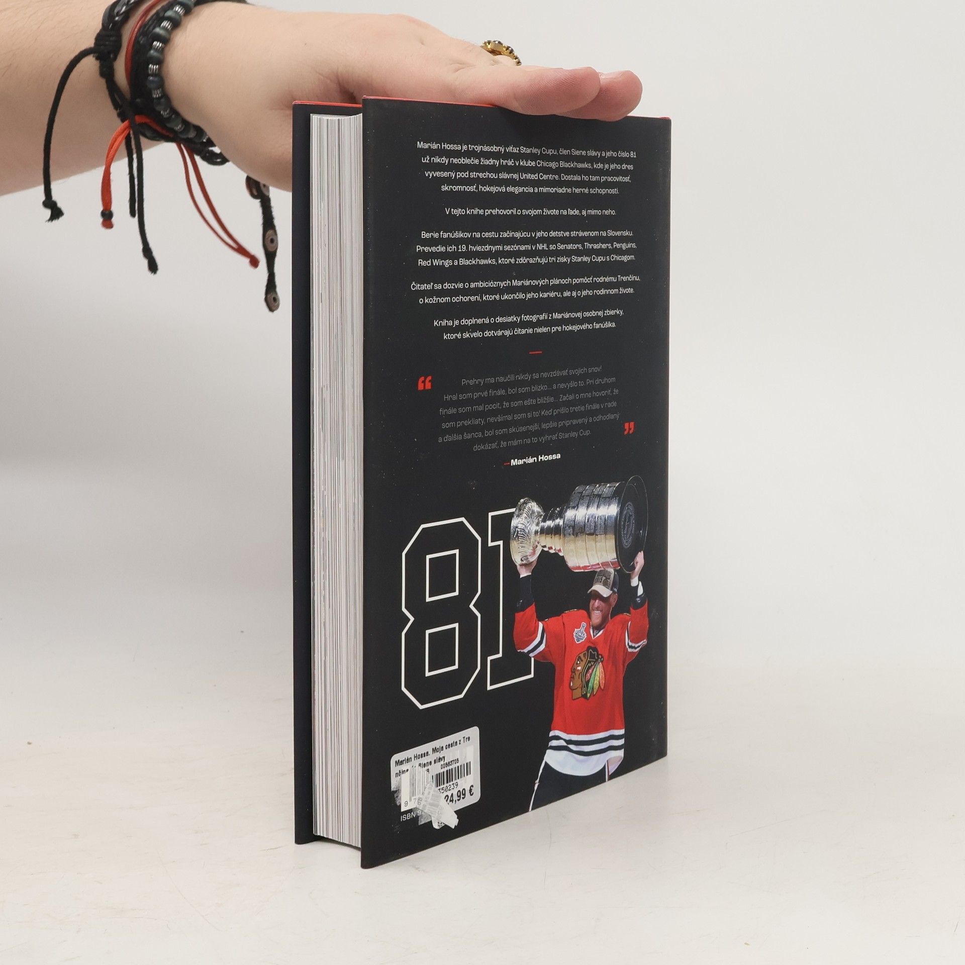 Prehry ma naučili, nikdy sa nevzdávať svojich snov!Hral som prvé finále, bol som blízko... a nevyšlo to. Pri druhom finále som mal pocit, že som ešte bližšie... Začali o mne hovoriť, že som prekliaty, nevšímal som si to! Keď prišlo tretie finále v rade a ďalšia šanca, bol som skúsenejší, lepšie pripravený a odhodlaný dokázať že mám na to vyhrať Stanley Cup. Marián Hossa je trojnásobný víťaz Stanley Cupu, člen Sieni Slávy a jeho číslo 81 už nikdy neoblečie žiadny hráč v klube Chicago Blackhawks, kde je jeho dres vyvesený pod strechou slávnej United Centre. Dostala ho tam pracovitosť, skromnosť, hokejová elegancia a mimoriadne herné schopnosti.Berie fanúšikov na cestu začínajúcu v jeho detstve strávenom na Slovensku. Prevedie ich 19. hviezdnymi sezónami v NHL so Senators, Thrashers, Pengiuns, Red Wings a Blackhawks, ktoré zdôrazňujú tri zisky Stanley Cupu s Chicagom.Čitateľ sa dozvie o ambicióznych Mariánových plánoch pomôcť rodnému Trenčínu, o kožnom ochorení, ktoré ukončilo jeho kariéru, ale aj o jeho rodinnom živote.Kniha je doplnená o desiatky fotografií z Mariánovej osobnej zbierky, ktoré skvelo dotvárajú čítanie nie len pre hokejového fanúšika.